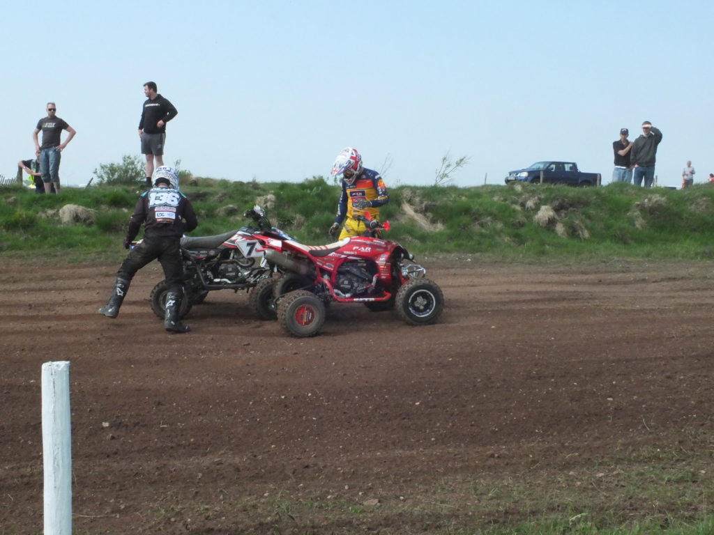 There was drama on the first bend of the first moto with Dean Dillon and Harry Walker when they got so close their bikes “locked together” with the wheels jammed and were going nowhere, it took almost three laps to separate them.