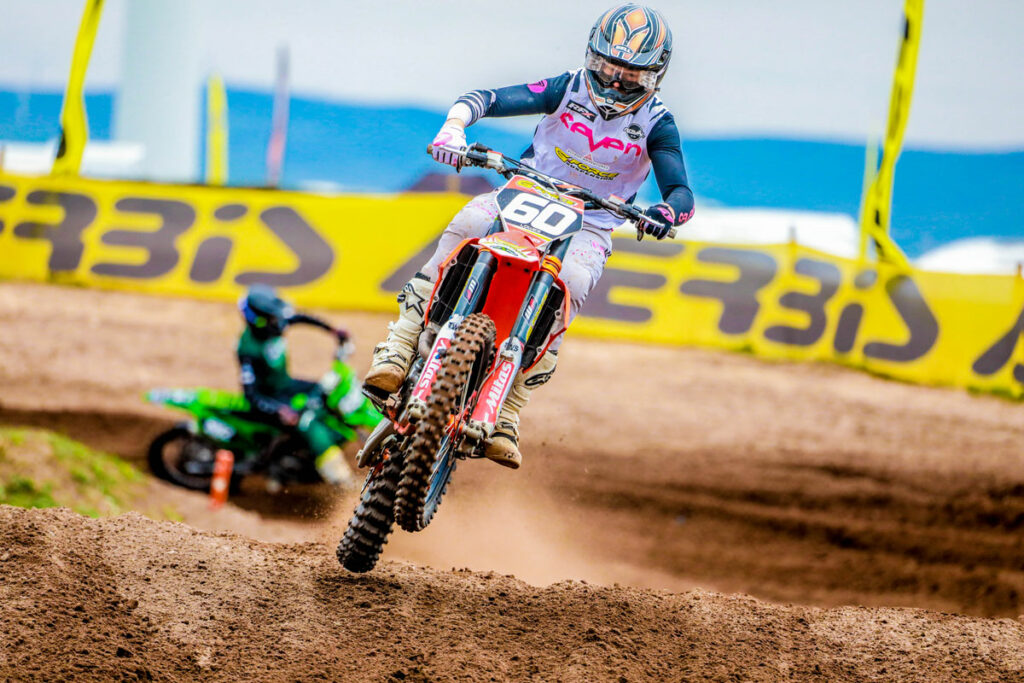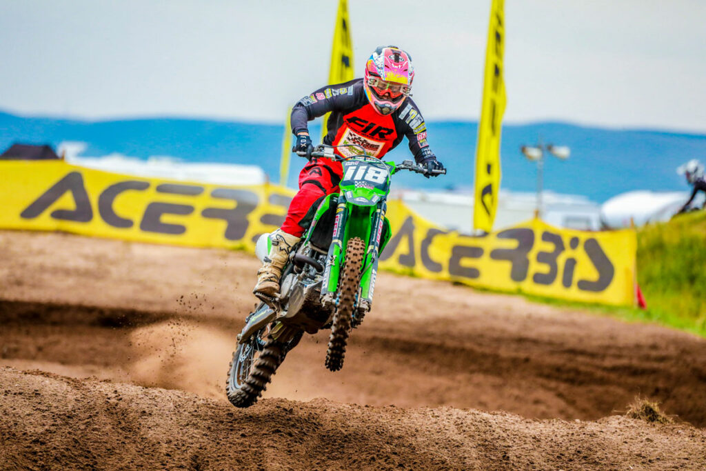 In the super fast Acerbis MX1 class Will Hughes claimed his first race and overall win of the year after a titanic battle in the final moto where he managed to overhaul former champ James Hutchinson. Hughes tied on points however with the reigning champion Jack Beniston who showed great speed all weekend and dominated when holeshots went his way and claimed a pair of race victories en route to runner up overall. After a couple of crashes in race one James Hutchinson recovered by taking a pair of race wins himself on his way to third overall ahead of a pair of former series winners Andy Wilson and Ed Briscoe.