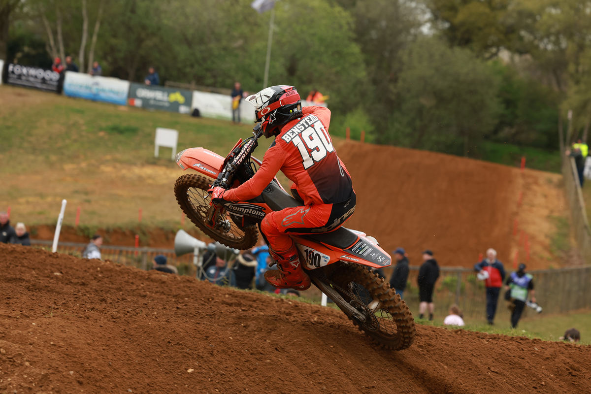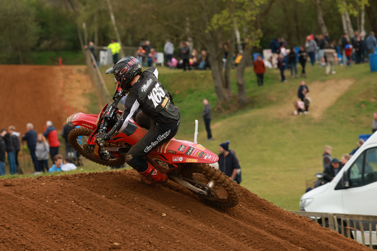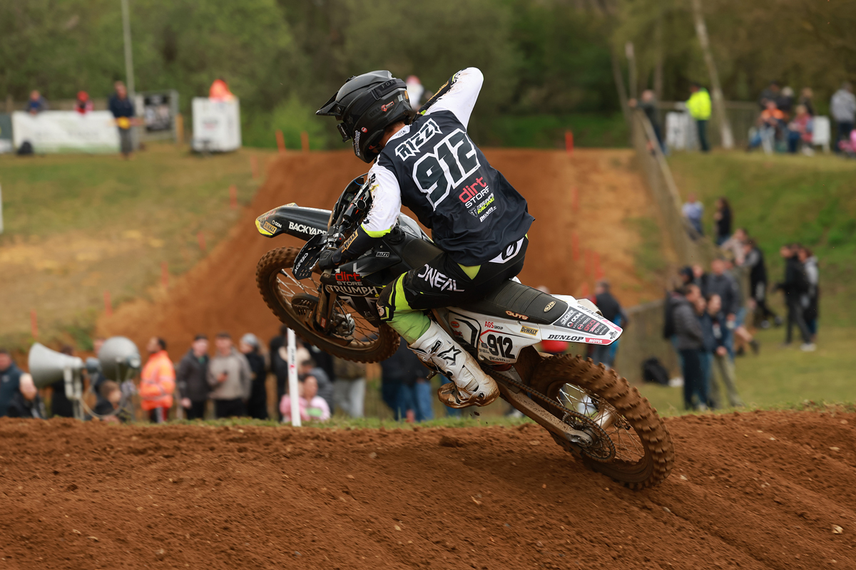 Expert class race two would see Chris Mills once again fly from the gate and grab the holeshot ahead of Tom Murphy (Destination MX Apico GMR Yamaha) up at the sharp end for the first time after a DNF in race one. Rizzi again showed good start speed with local star James Cottrell (ASA United Gas Gas) also in the mix early on. Murphy and Rizzi traded blows, but this only allowed Mills to dictate the tempo at the front, and he was soon in full control, ready to make it back-to-back race wins. Rizzi made the move stick on Murphy for second while Nunn and Mustoe battled for fifth place, with the latter claiming that position towards the end of the race. Mills would again finish first, with Rizzi coming home in second and Murphy holding on for third. James Cottrell pleased the local crowd to finish fourth on his return to Eastern Centre racing.