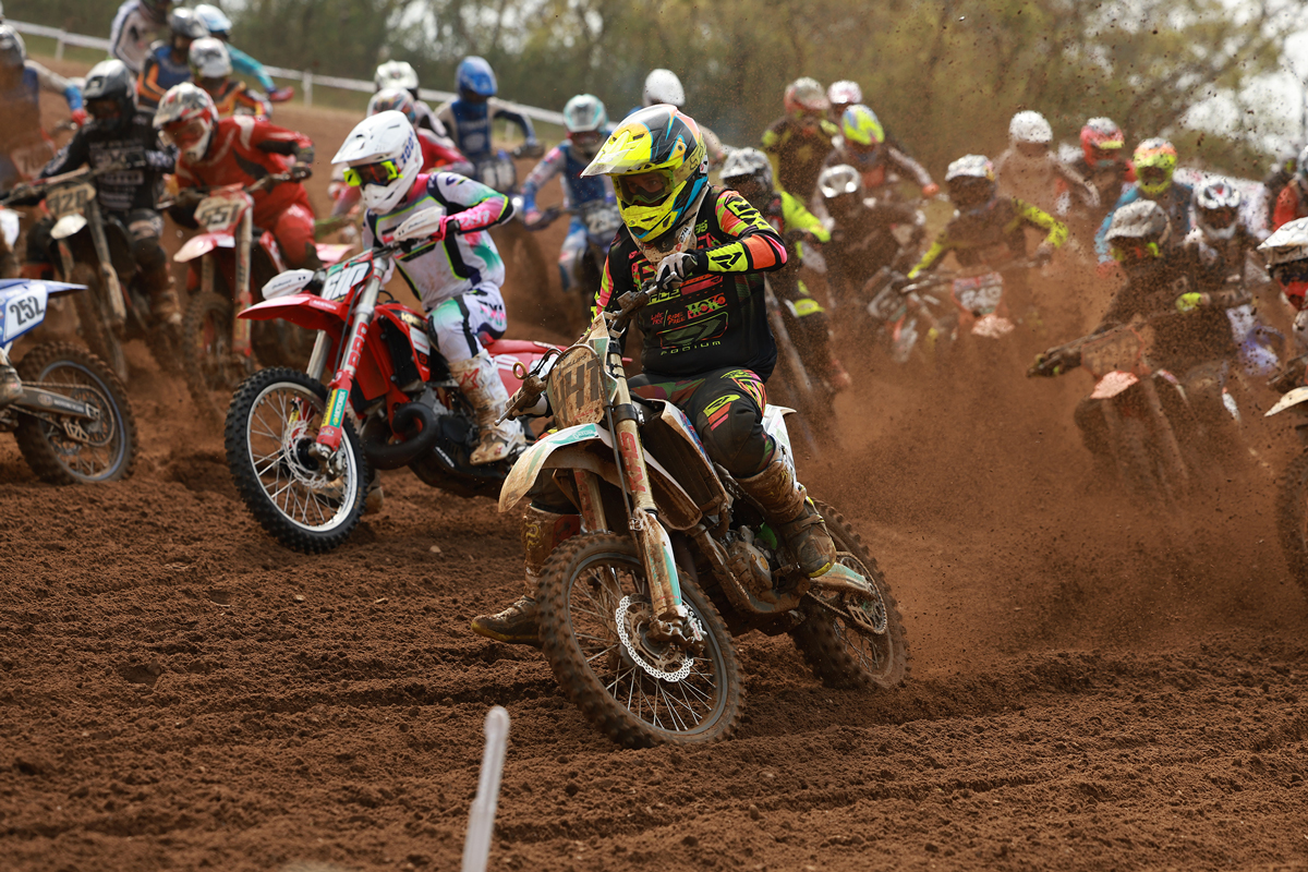 Race one of the Expert class saw Chris Mills pounce from the gate and into an early lead, with Rizzi, Sam Nunn (John Banks Honda) and Calum Mitchell (Worx Scaffolding Total Triumph) all close in behind. Luke Benstead (Comptons Car and Commercial KTM) also made a solid start inside the top five and set about defending his position from Ben Mustoe (ASA United Gas Gas), who was looking to continue his good form to start the season. Mills and Rizzi locked horns for most of the race, but the latter was never really close enough to make the pass. Current championship leader Sam Nunn would make a costly error, dropping out of the top 5 and giving Mustoe an easy pass on his way into third place, while Mitchell’s charge fizzled out with a couple of laps left, leaving him in fifth. Mills neatly made his way past back markers and took the chequered flag, closely followed by Rizzi in second and Mustoe in third, with Benstead coming home in a solid fourth place.