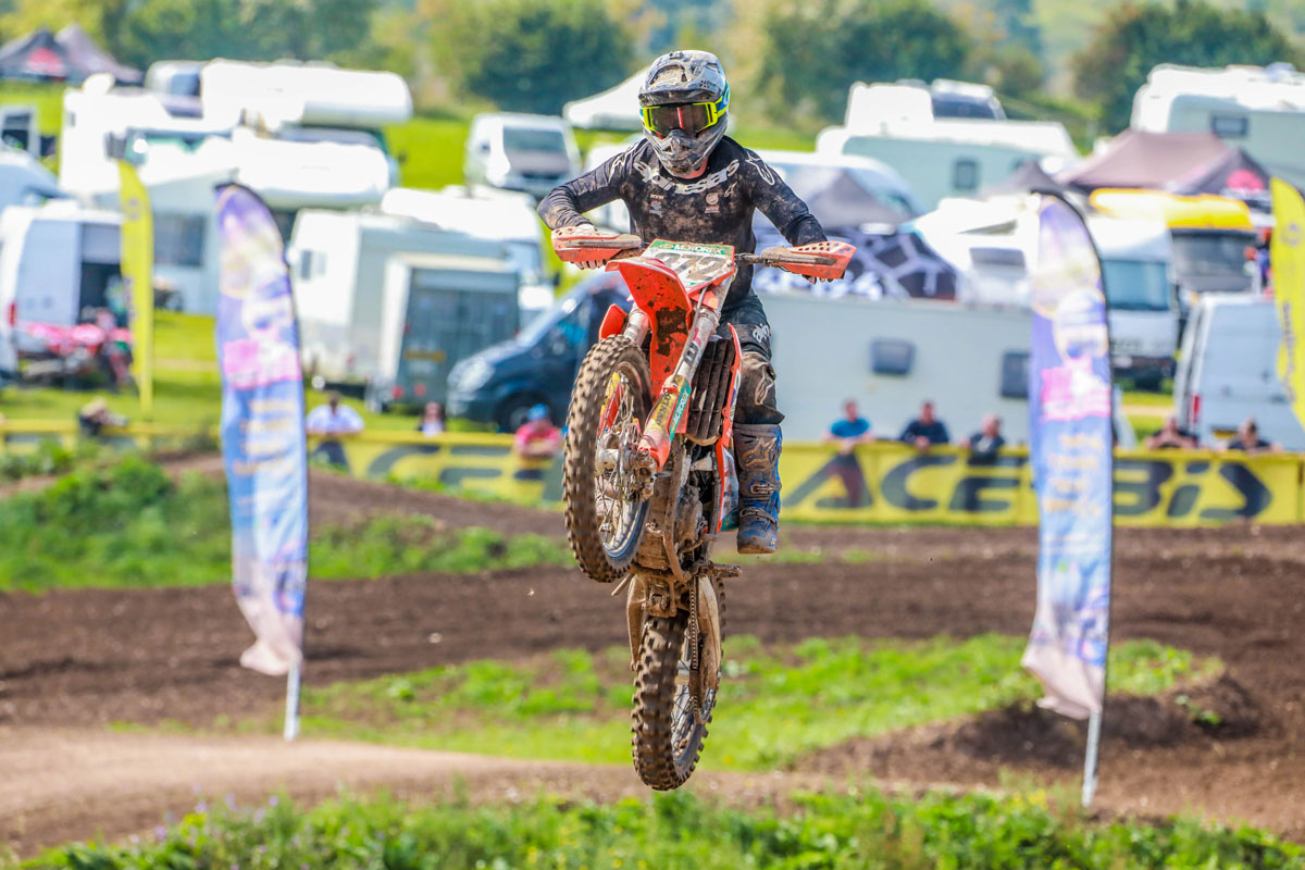 In the Acerbis MX1 category it was all sealed up before the first gate drop of the weekend with runner up James Hutchinson a no show and Jack Beniston over 200 points up on the rest Beniston was unofficially back to back MX1 champ as he lined up for moto 1. The 401 machine however didn’t have a leisurely ride out, he put the icing on the cake with all five race victories and another overall win. Max Lewis was a wildcard and put himself onto the podium in the runner up spot while Ed Briscoe leap frogged James Hutchinson to runner up in the series with a third place overall at the finale. Simon Booth and Keelan Hope rounded off the top five.