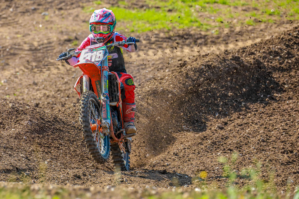 First up were the Craigs Motorcycles sponsored MX2 class, and wildcard rider Louis Vincent took his KTM to a maximum points haul en route to the top step of the podium ahead of Wulfsport Suzuki man Logan Wilcox, who had a strong showing at Cusses and took home the runner up spot by just one point from 2022 runner up Dominic Newbury who was making a return to the series as a wildcard aboard a Kawasaki. Lee Sealey clinched the championship after the first race on Sunday and proudly displayed his number 1 plate in the final moto on his way to fourth overall ahead of Joel Fisher.