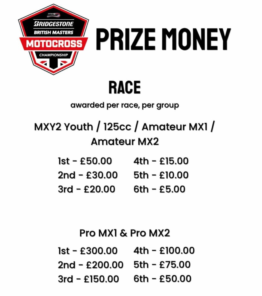 The Prize pot for the 2022 Bridgestone British Masters Motocross Championship has been announced.