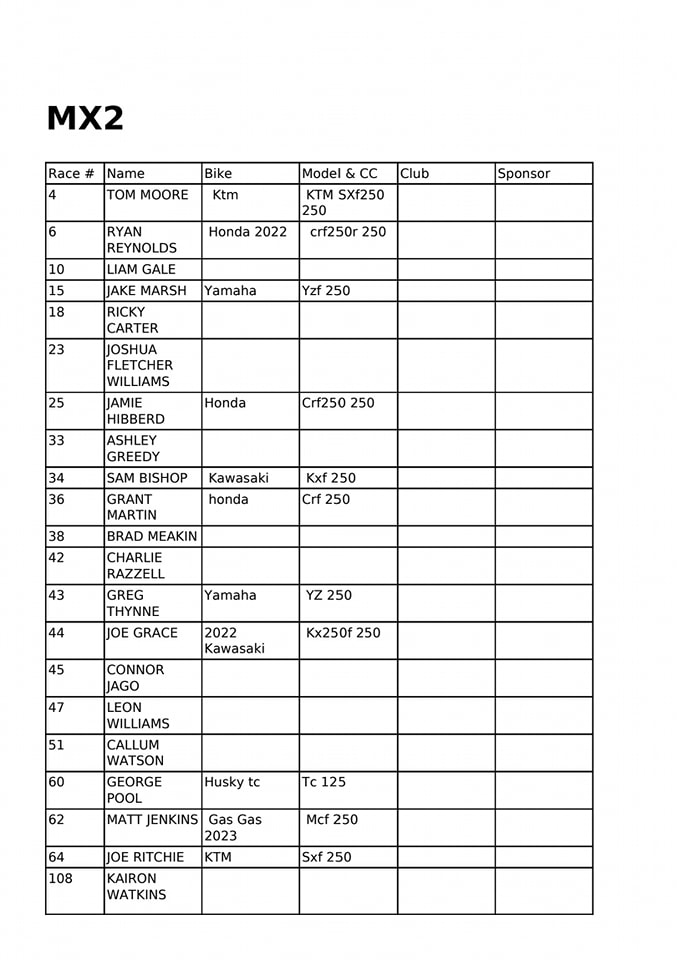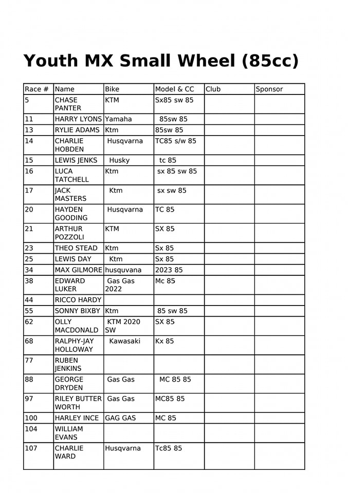 Homepage » 2023 BSMA Apico Nationals Round 1 – Entry Lists
