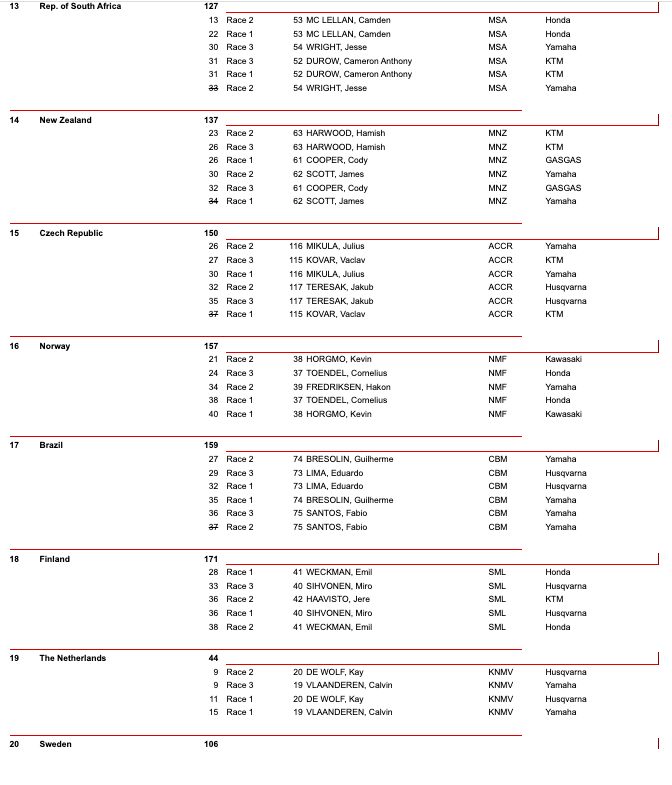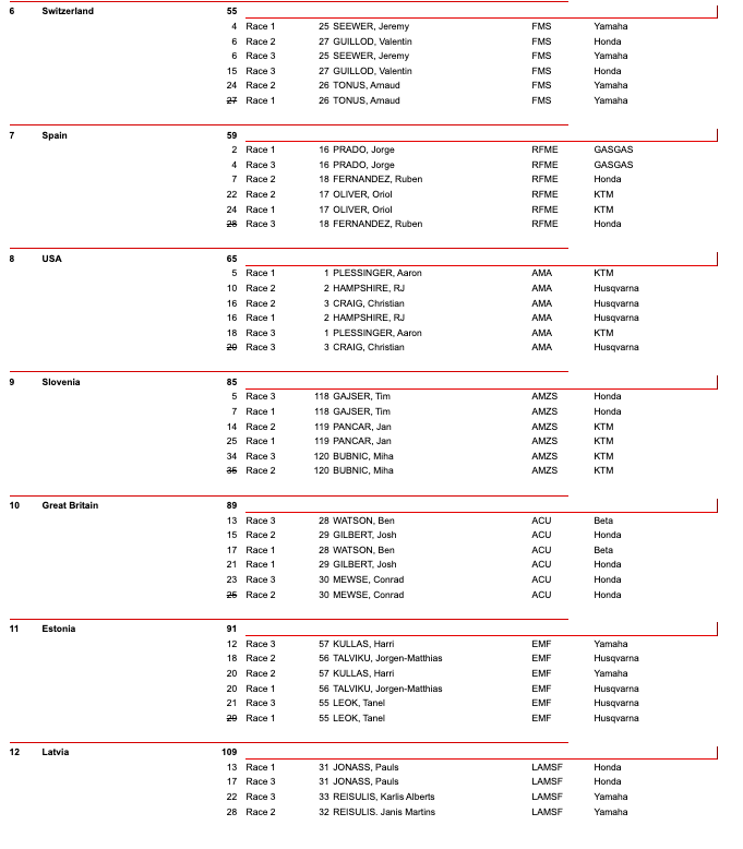 Over and out from the 2023 Motocross of Nations… Here are the Race Results, the Overall Team Standings and the Individual class results from today’s awesome event…