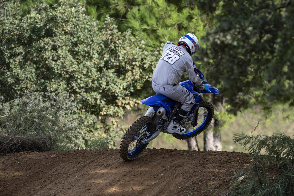 The brakes on the YZ range have been strong and solid for pretty much as long as I can remember, and that’s still the case. I particularly liked the front brake as I like them razor sharp to the touch, I can’t stand a ‘spongy’ front brake that you have to pull halfway to the bars before it starts to bite, I want it working within a couple of mm’s of pulling the lever and ideally with one finger. The front brake was right where I wanted it from the get-go and the I particularly liked the shape and feel of the lever. Out on track, there was a really nice section where you land off a small step up and into an inside corner mound with a short table top straight after, it was my favourite part of the track mainly because the control and confidence I had on the brakes and feel with the rear brake to just lock it up a bit to quickly change my direction on the upslope of the mound on the way in, along with the lightweight feel and manoeuvrability of the bike in general.