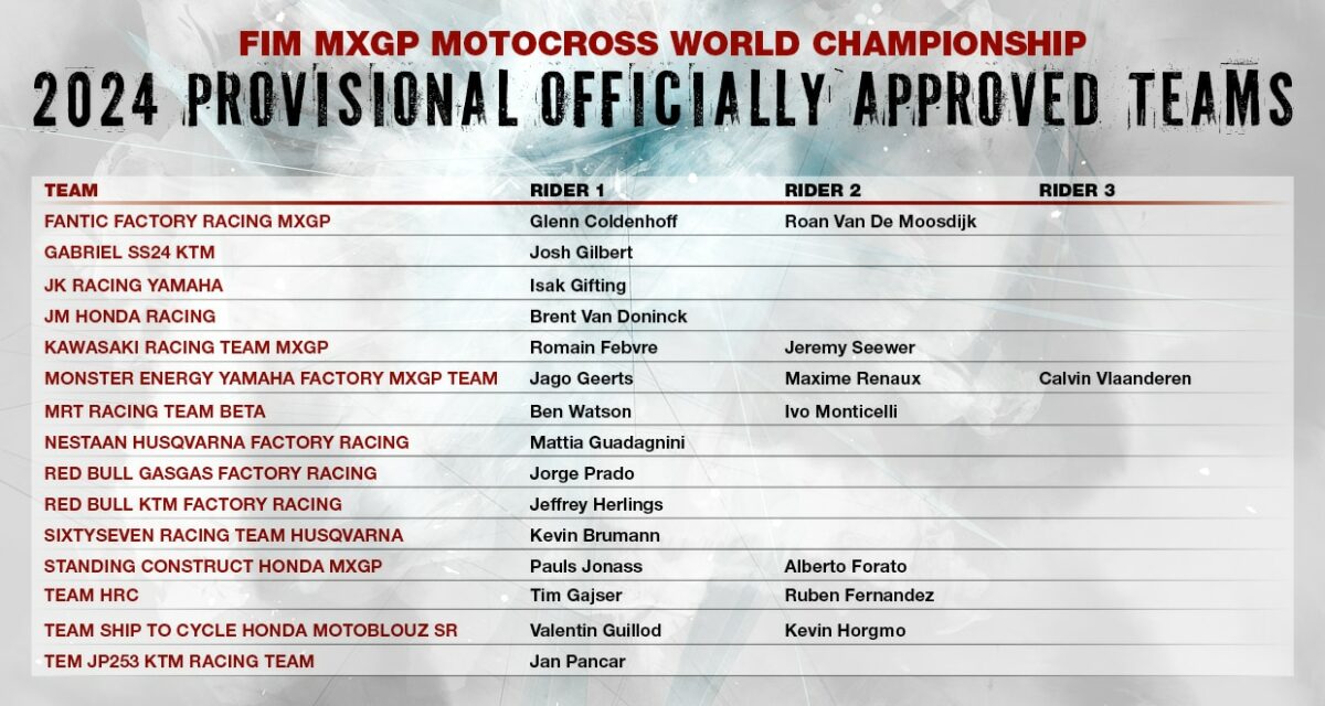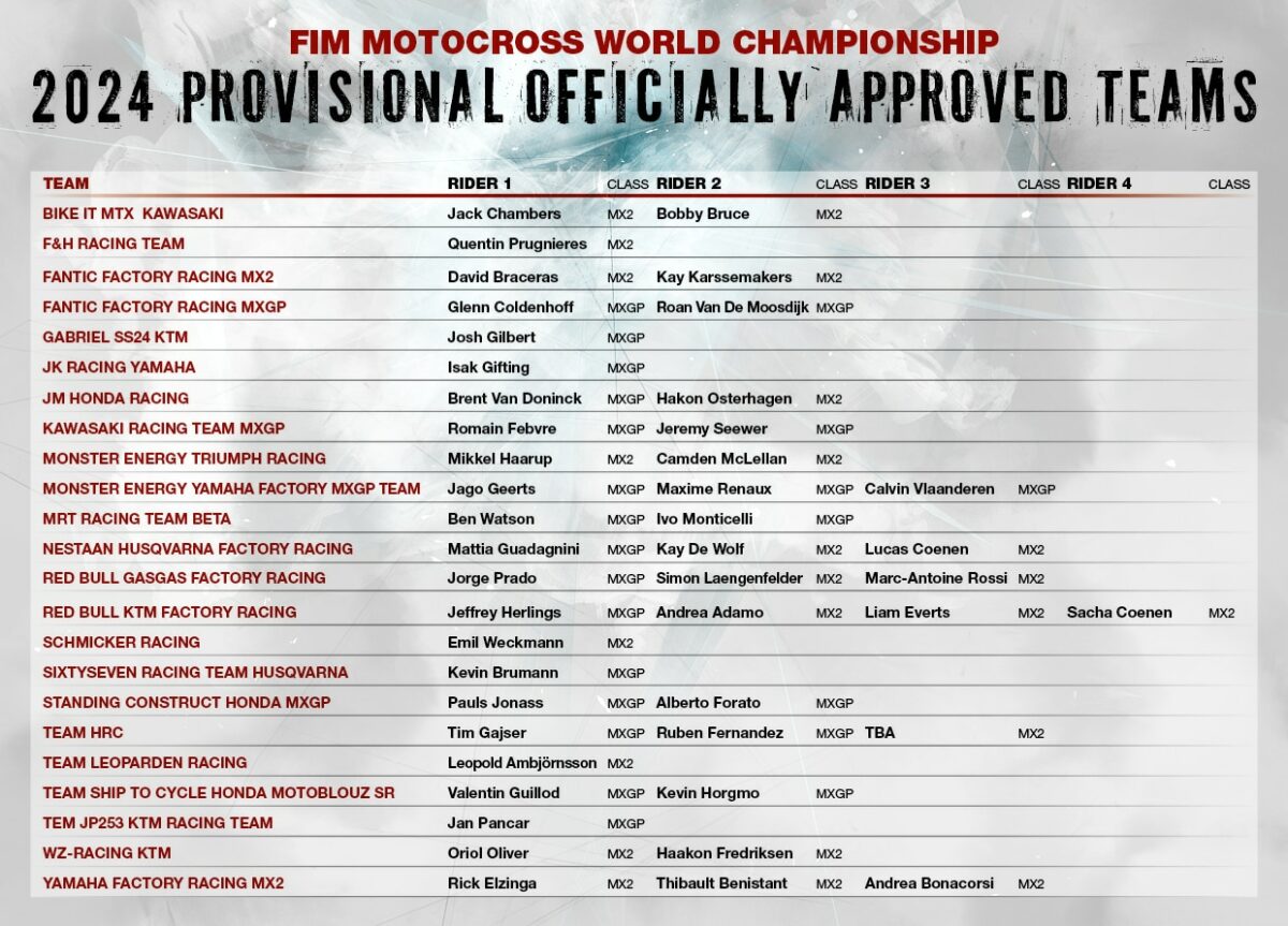 Infront Moto Racing is delighted to present the Officially Approved Teams (OAT) list for the upcoming 2024 FIM Motocross World Championship!
