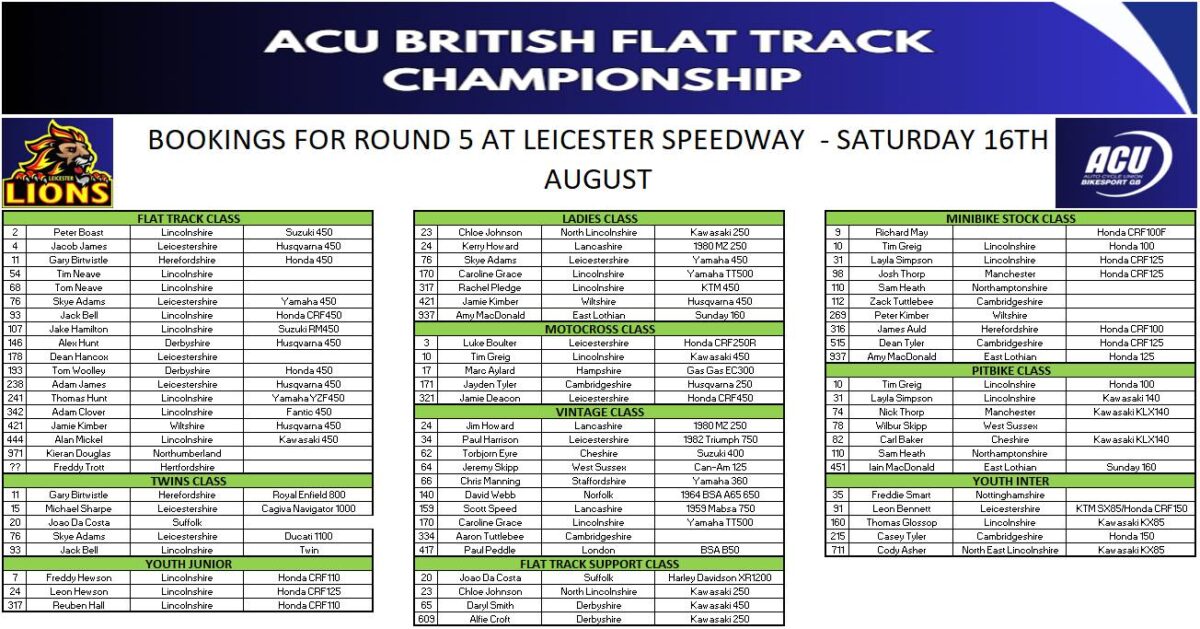 The 2025 ACU British Flat Track Championship reaches its thrilling conclusion on Saturday 16th August at Leicester Speedway, with practice and racing set to kick off from 12:00pm. Spectators can enjoy the action free of charge.