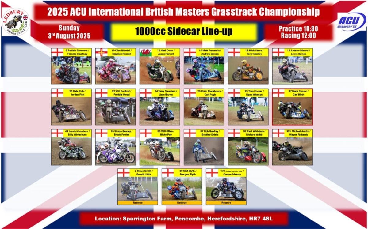 The countdown is just about done, so it’s time for the talking to stop and the tapes to rise on the 2025 ACU International British Masters Grass track Championship. This year’s blue ribband event is being hosted by Ledbury MCC at their Sparrington Farm venue situated at Pencombe, Herefordshire, HR7 4SL and what a thriller it promises to be!
