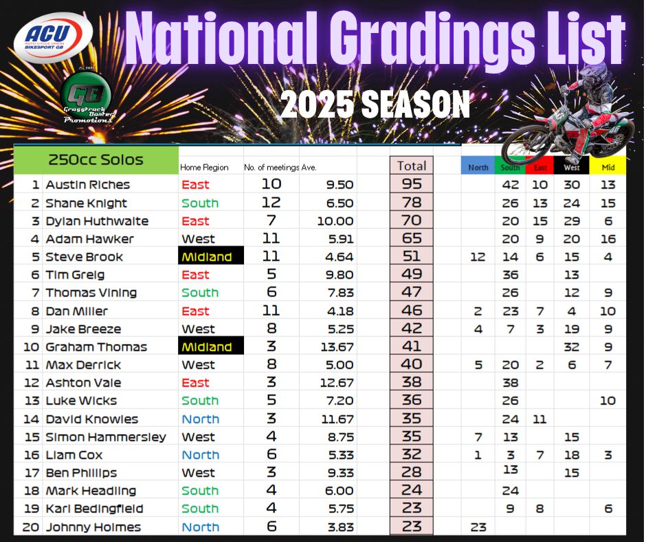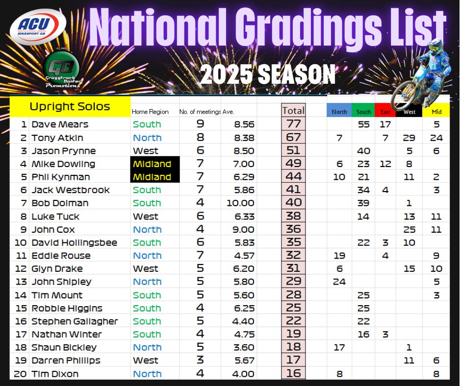 2025 British Grasstrack National Gradings list