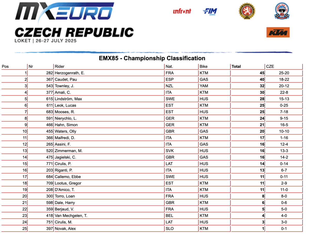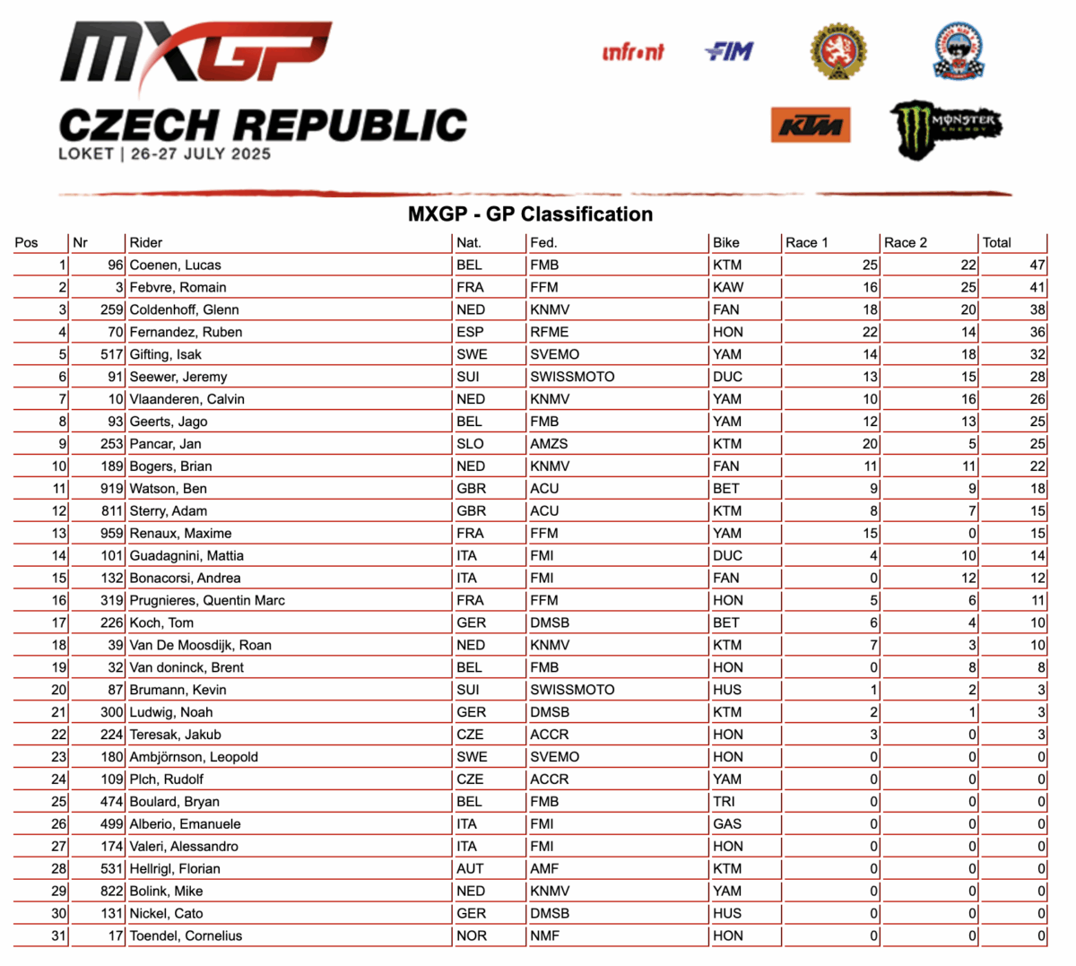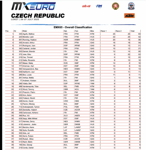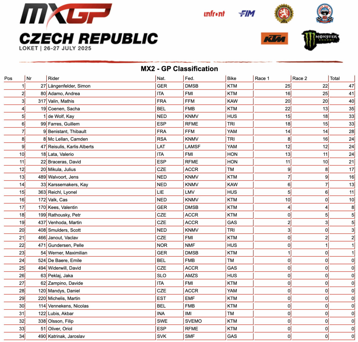 Check out the full set of results from all classes from the 2025 MXGP of the Czech Republic at Loket below…