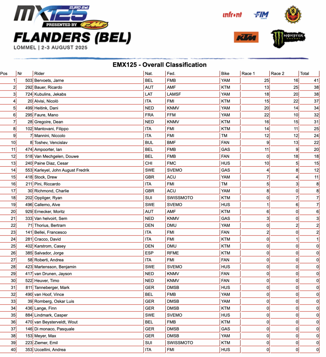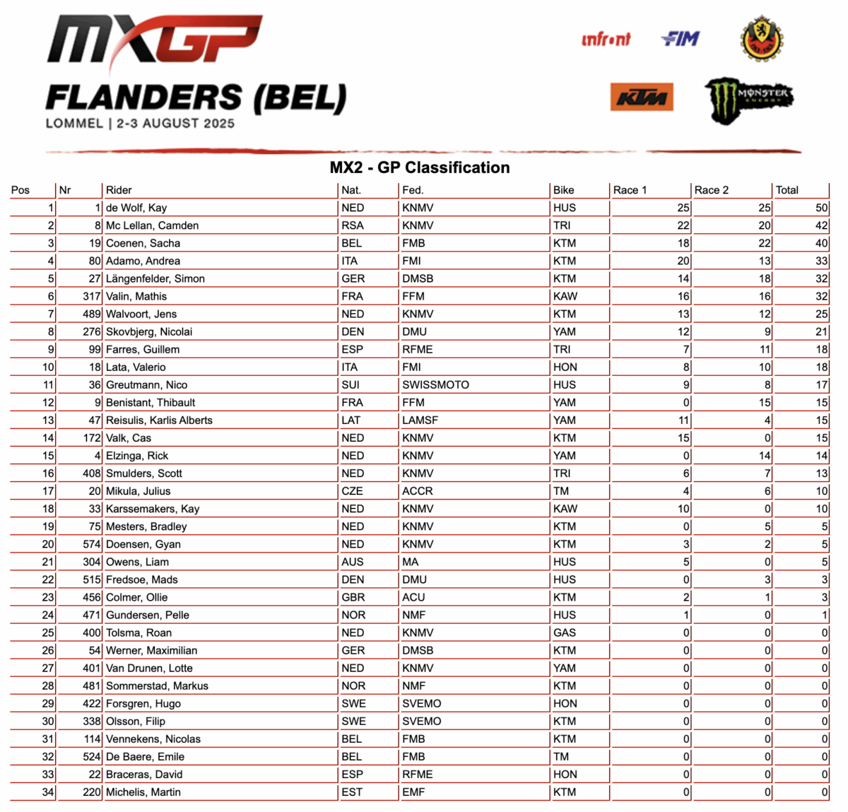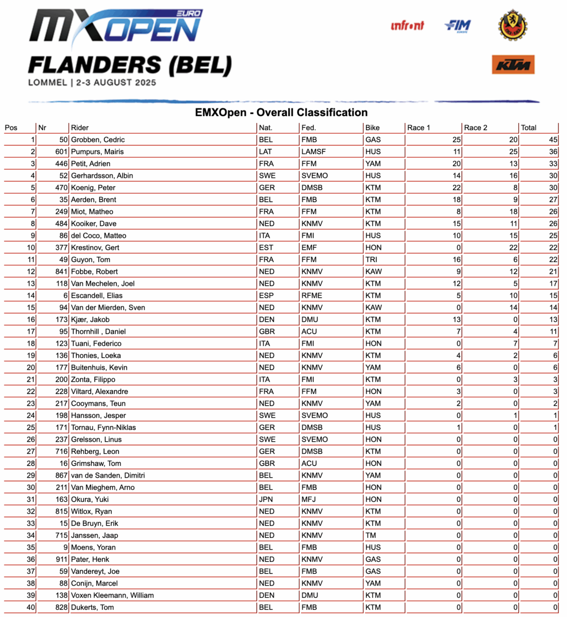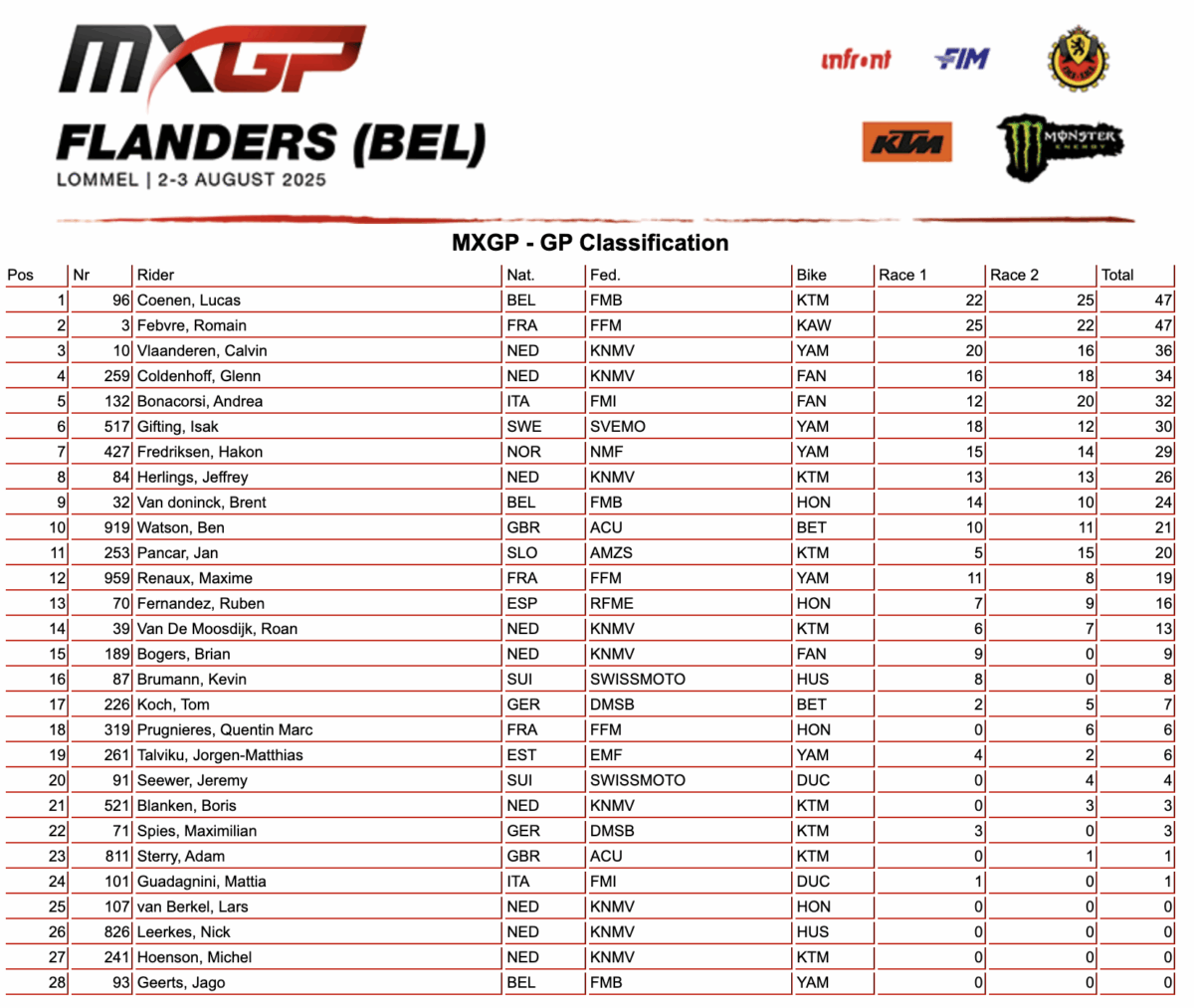 Check out the full set of results from the 2025 MXGP of Flanders at Lommel…