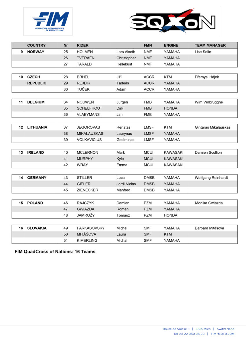 The countdown is well and truly on to the 2025 Quadcross of Nations, which takes place at Heerde in the Netherlands on September 27th & 28th, so here are the full Pre-Entry lists.