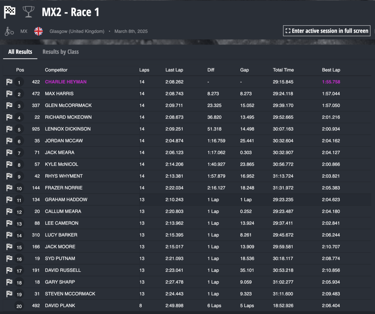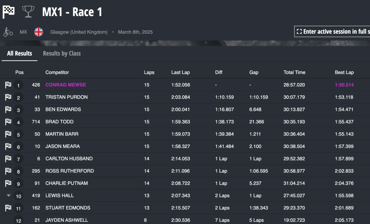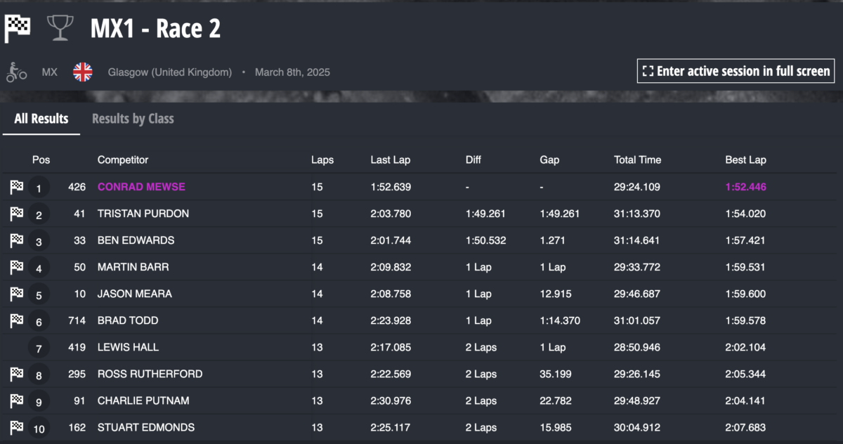 The 2025 Scottish Motocross Championship Round 1 is done and dusted in Tain, with Conrad Mewse in mighty fine form in the MX1 class, winning both motos by massive margins ahead of Tristmon Purdon in second and an impressive Ben Edwards third.
