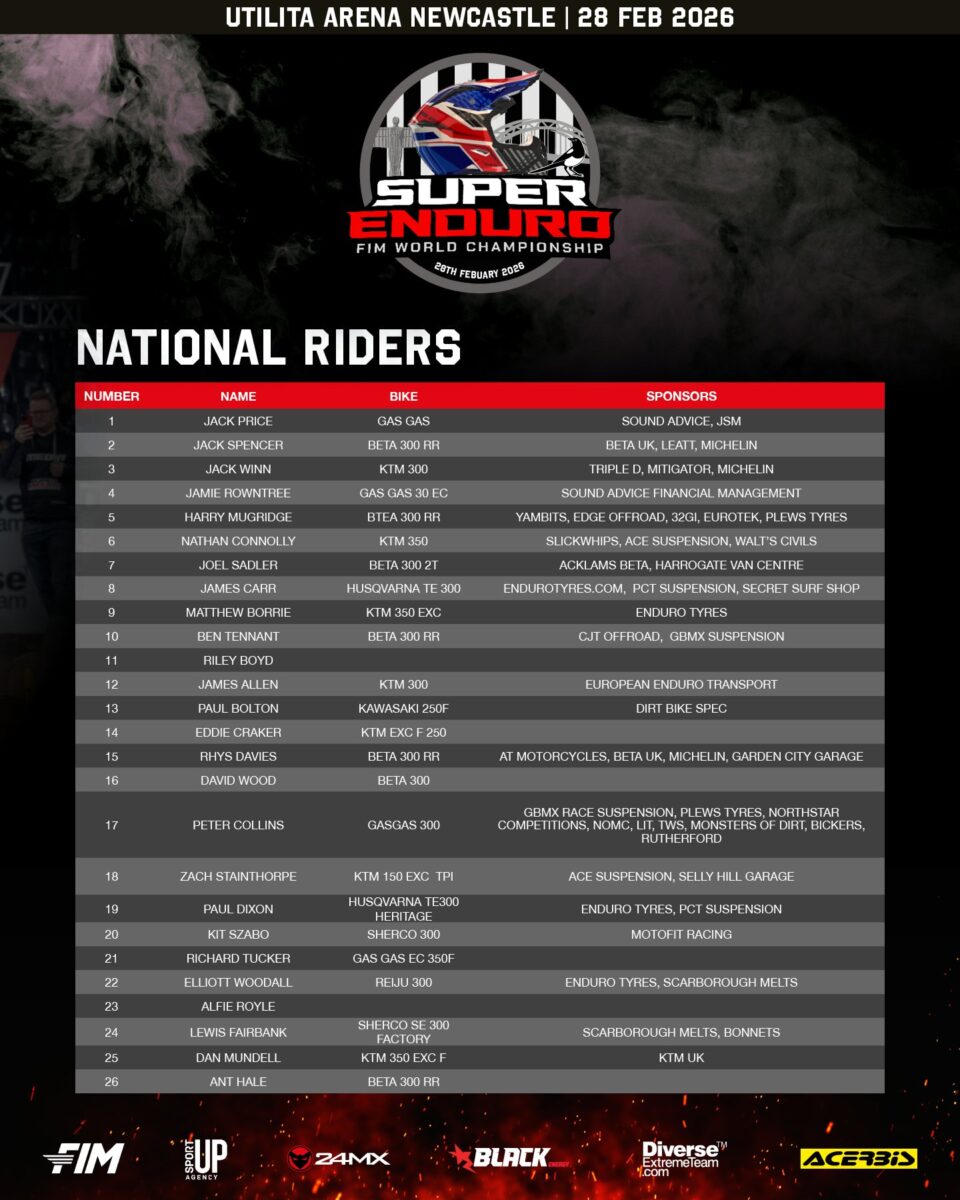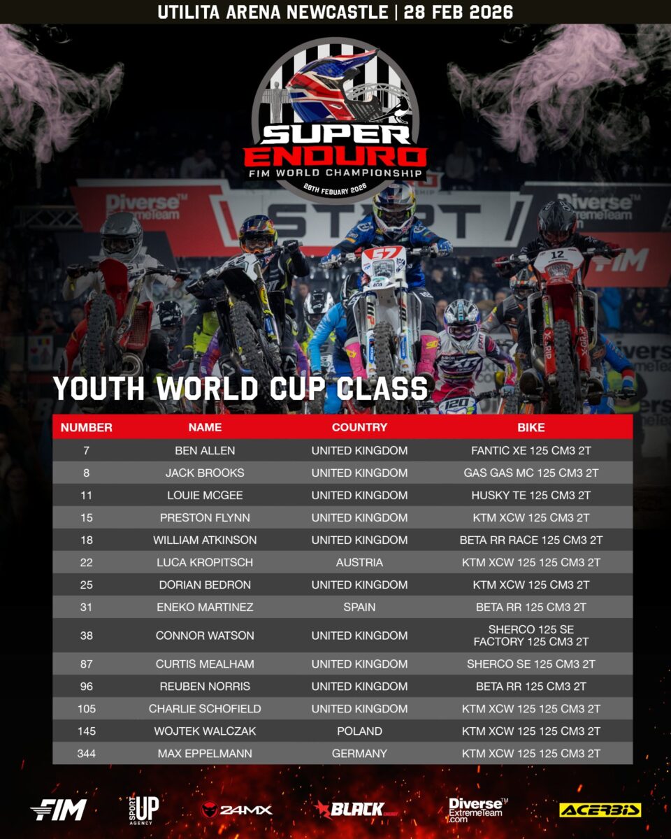Also, there are plenty of Brits lining up in the Junior and Youth classes, as well as a stack of National class riders hunting for glory in front of the sell-out Newcastle crowd.