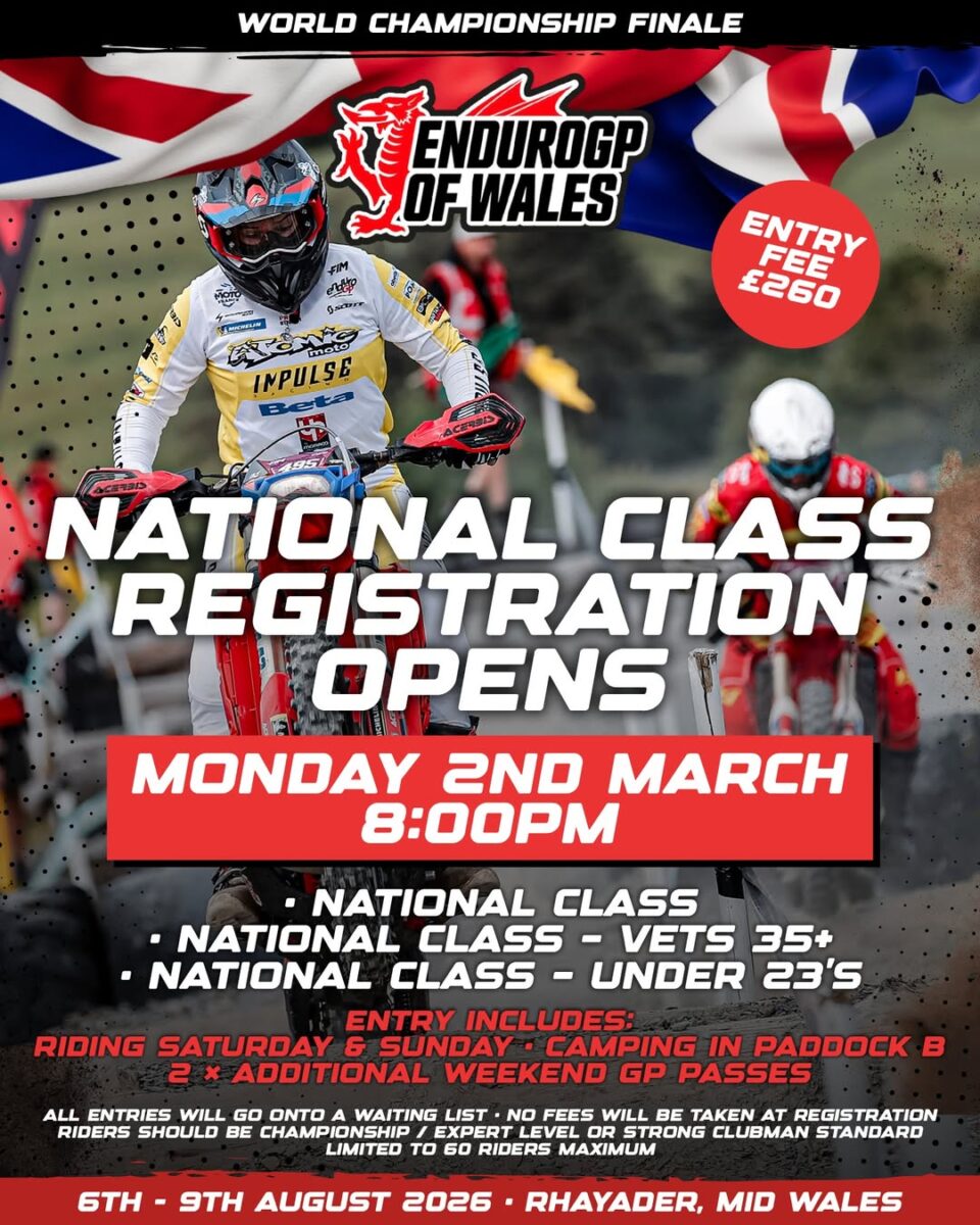 Entries for the National class of the 2026 EnduroGP of Wales will open on Monday, 2nd March at 8pm, but riders will need to be quick to get in as entries are limited to just 60 riders.