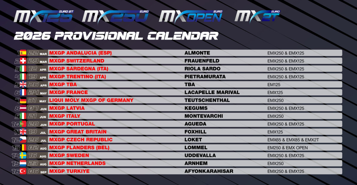 FIM Europe, together with Infront Moto Racing, the FIM, and all organizers, remains committed to delivering a dynamic calendar that celebrates the very best of European motocross and provides fans with another season of thrilling racing.