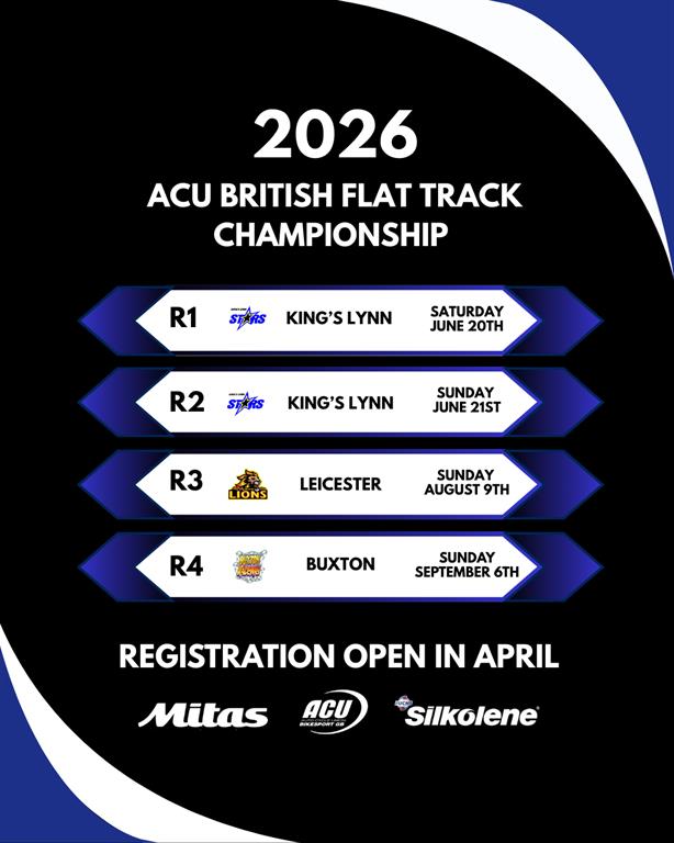 The organisers of the 2026 ACU British Flat Track Championship are pleased to confirm the official schedule for the upcoming season, with four exciting rounds set to take place at some of the UK’s most iconic speedway venues.