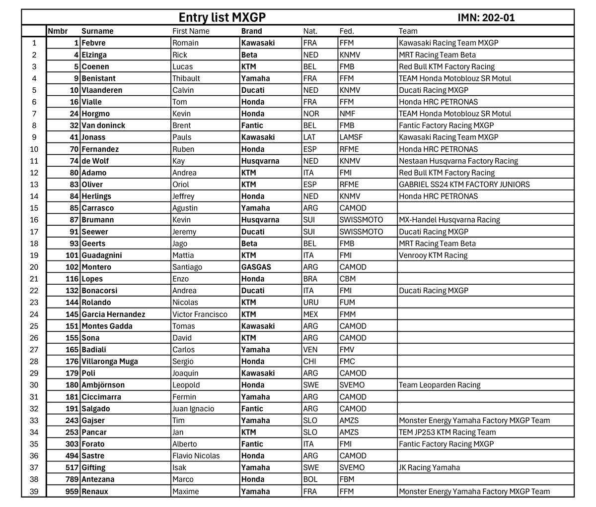 Take a look at the complete entry lists below and get ready for the opening round of what is shaping up to be one of the most competitive MXGP seasons in recent history.