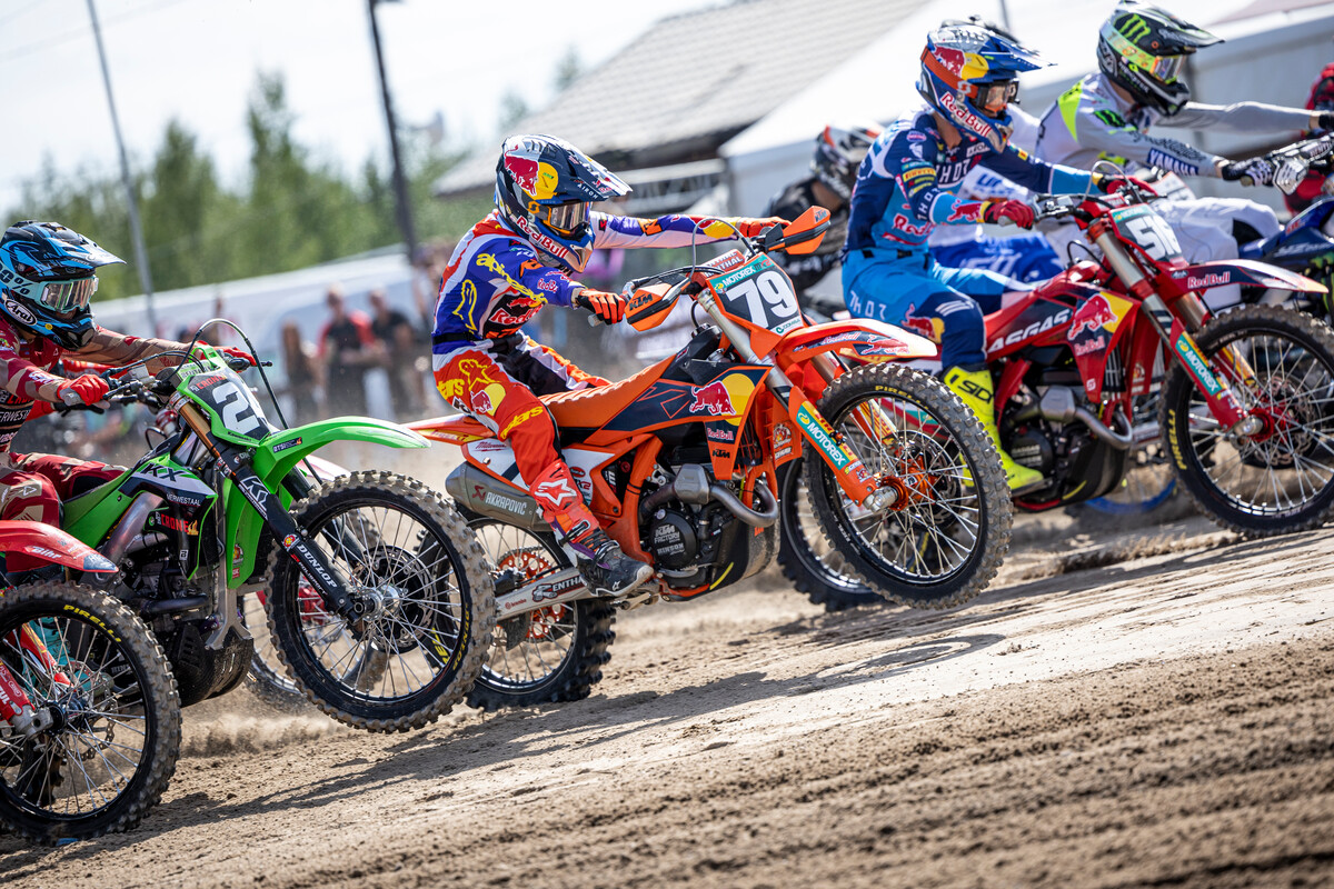 The Italian took his KTM 250 SX-F to P1 in both motos through the damp Vantaa sand of the circuit next to Helsinki airport to stretch his margin at the peak of the standings to 60 points. Teammate Liam Everts was also on the podium in 3rd overall and Jeffrey Herlings made a return to MXGP action with a top five classification.