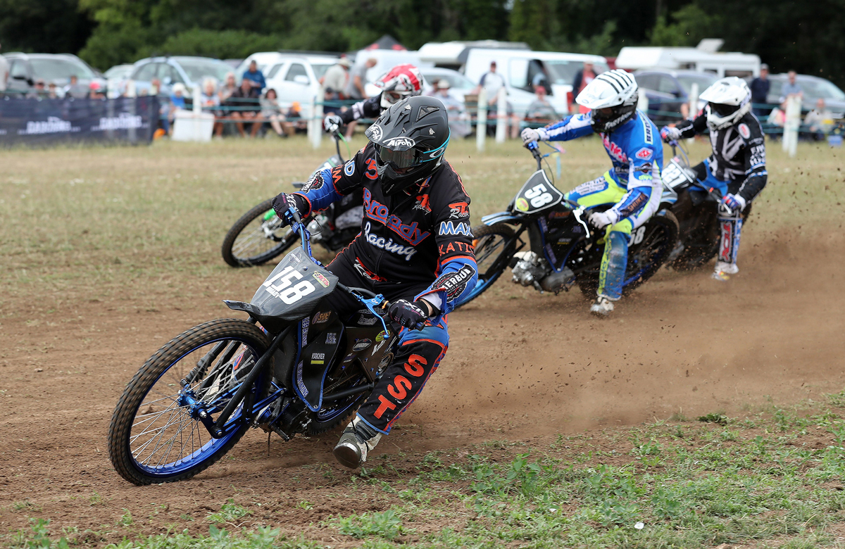 Unfortunately, the Champs challenge was halted when he shed a chain, leaving Vale, another Oxford Chargers speedway rider, to race clear and onto victory from Knowles, a 250cc Champion right back in 2004, the hard-charging and always entertaining Simon Hammersley, Austin Riches, Vining and Tim Greig.