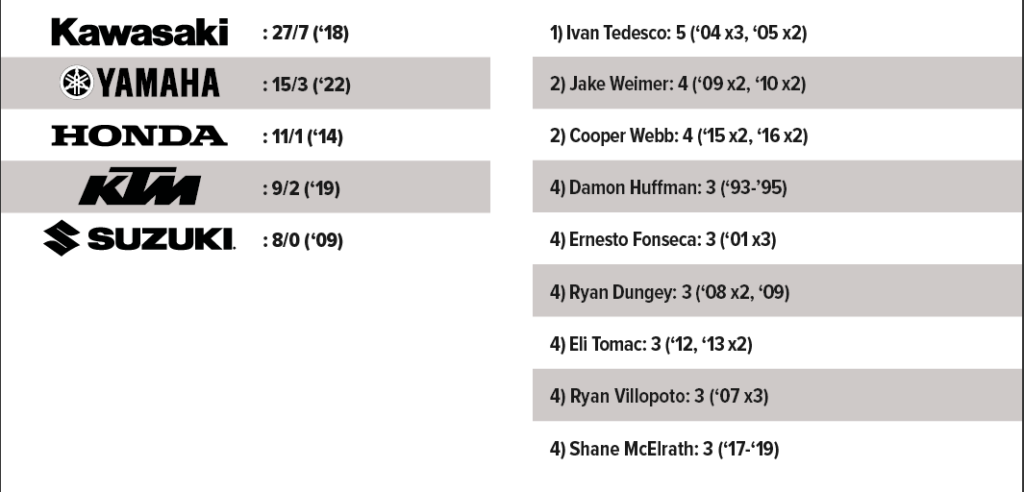Path to the Title: A hefty 9/13 (69 percent) of riders who won A3 went on to win the title, including Ryan Dungey in 2015. This is the first A3 since 2015 and 14th total.