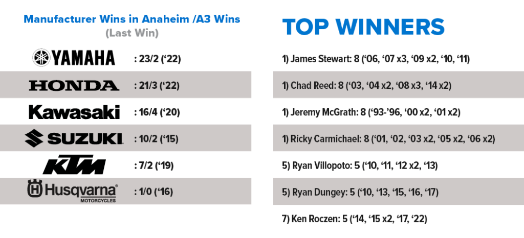 450SX Manufacturer and Top Winners: Anaheim