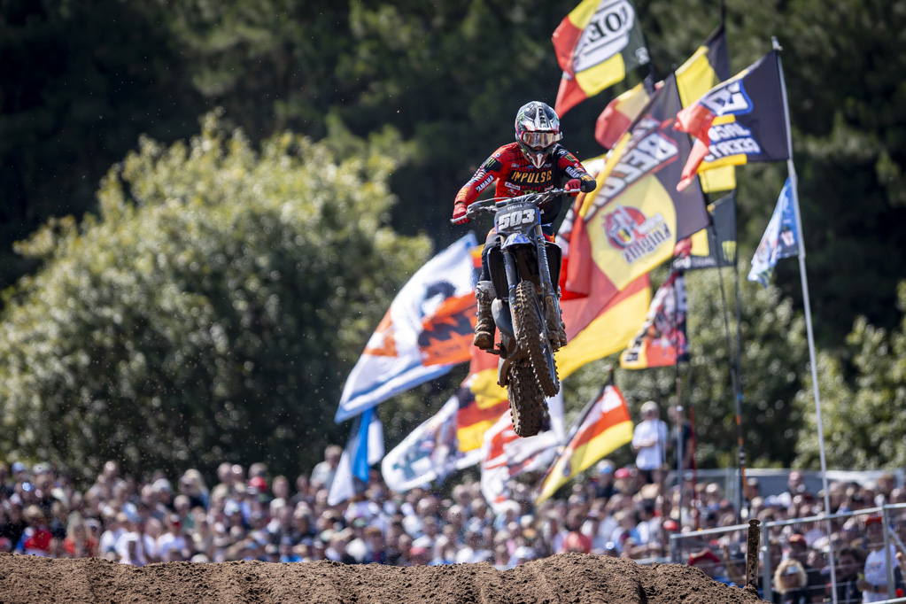 Alvisi showed amazing resilience and began a late-race charge, passing MSC Imbach MX Racing Team’s Riccardo Bauer and then Mantovani to climb to an important sixth place. Despite, crashing on the very last lap again just two corners from the finish, the Italian fortunately remounted quickly enough to retain sixth place, preventing Mantovani from capitalising on it.
