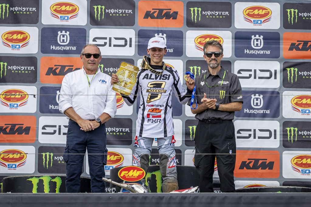 Alvisi in the end kept his nerve with the direct battle with Faure when it mattered most. His composure under pressure secured him the overall points lead and crowned him the 2025 EMX125 presented by FMF Racing European Champion.