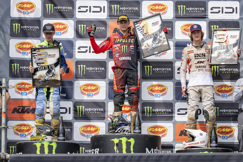 While Nicolò Alvisi narrowly missed the podium with a 6–2 result, the Italian had the biggest reason to celebrate as he claimed the coveted EMX125 presented by FMF Racing title. Mano Faure missed his opportunity to claim the European crown after a strong season and multiple race wins but can console himself with the prestigious FIM Junior Motocross World Championship 125cc title. Filippo Mantovani sealed the third place in the championsip confirming a solid season.