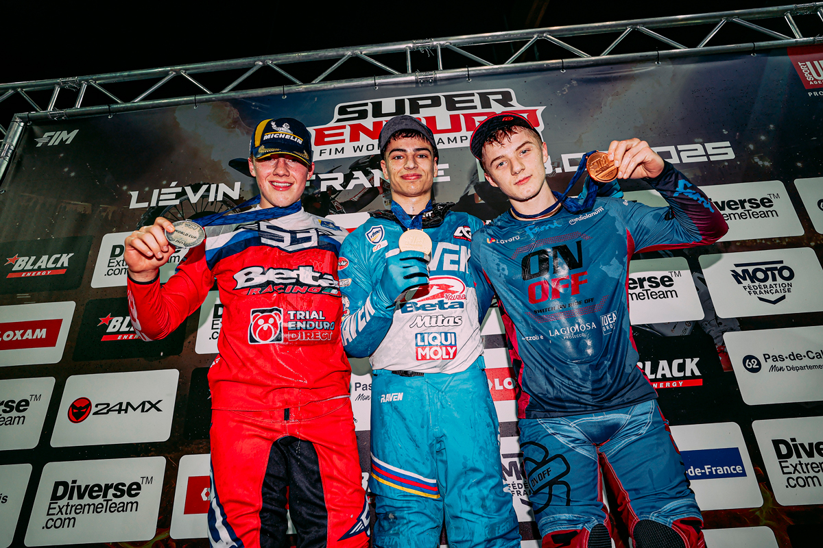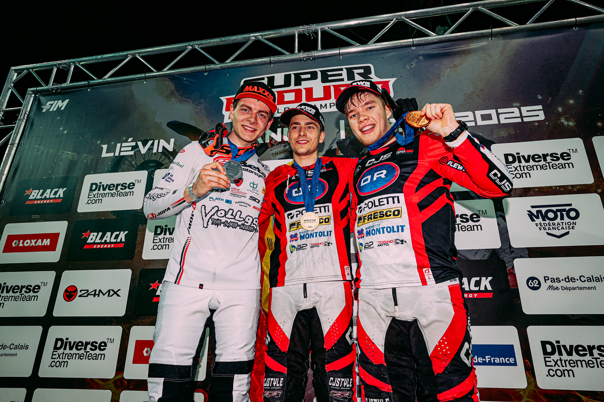 Milan Schmüser (GER) delivered a strong performance in France, taking the overall win, but it was Marc Fernandez Serra (ESP) who secured the FIM SuperEnduro Junior World Cup title with a race to spare. Fernandez finished second on the night, while Roland Liszka (HUN) claimed third both in the event and the final standings, edging out Toby Shaw (GBR) by just one point.