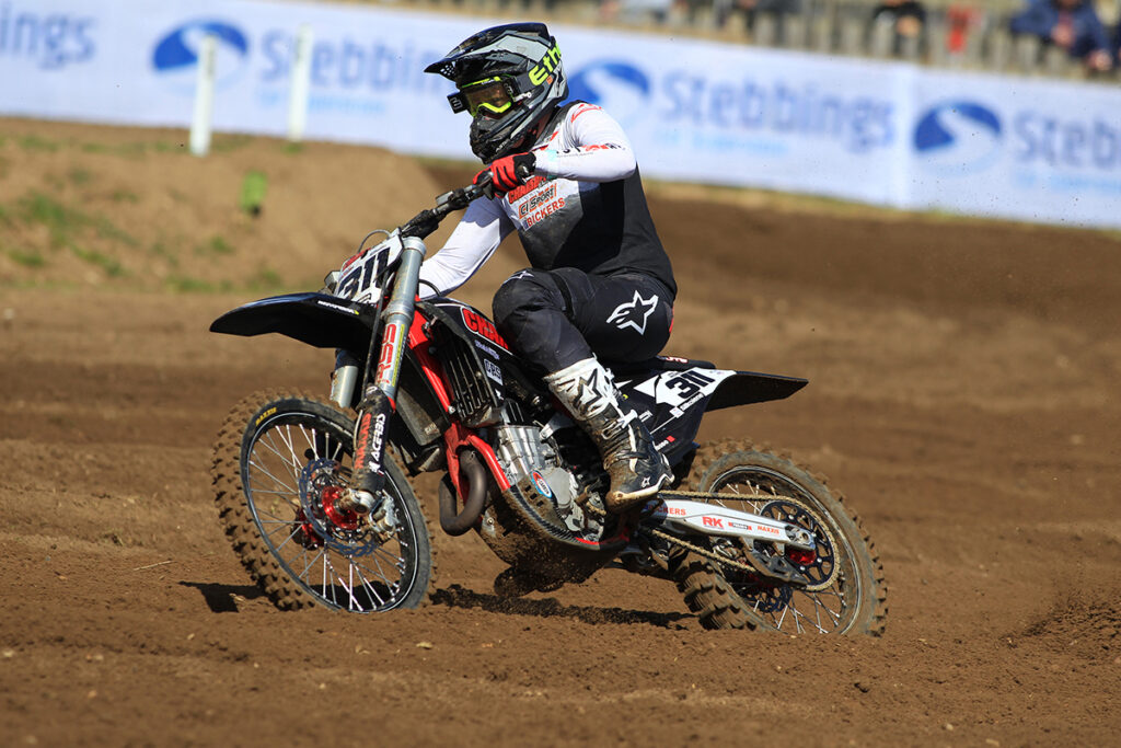 In the morning qualifying session Tom Grimshaw posted the fourth fastest lap time in MX2, while Alfie Jones secured 12th fastest with Ben Putnam 14th fastest after returning to the MX2 class on the 250 2-stroke. In the MX1 class Glenn McCormick finished 22nd fastest while Aaron McCarroll made his return to British Championship action after 18 months of injuries and finished 33rd fastest.