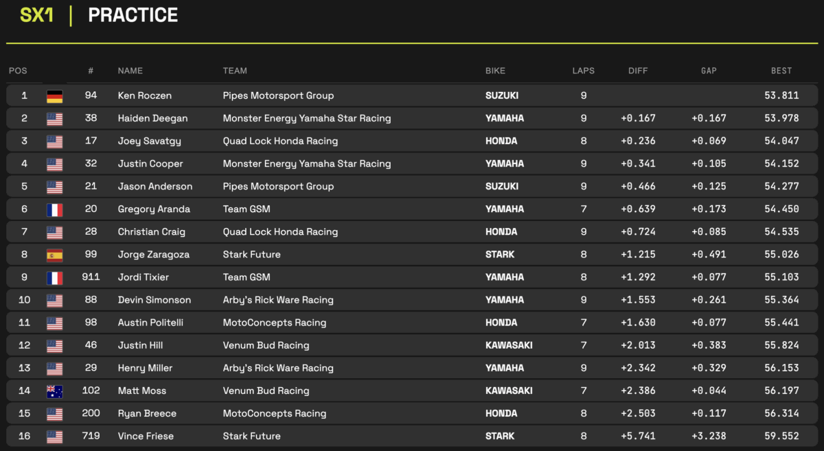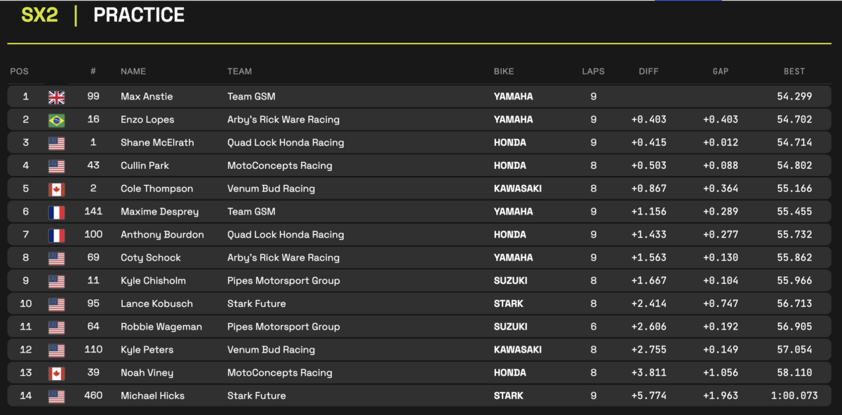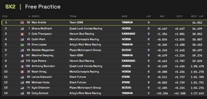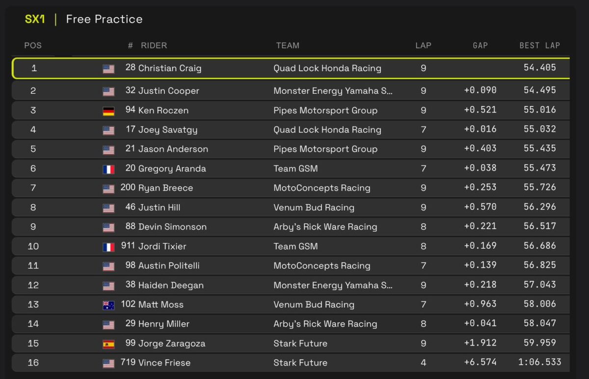 In session 1 Christan Craig was superfast in SX1 and Anstie was again top dog in SX2…