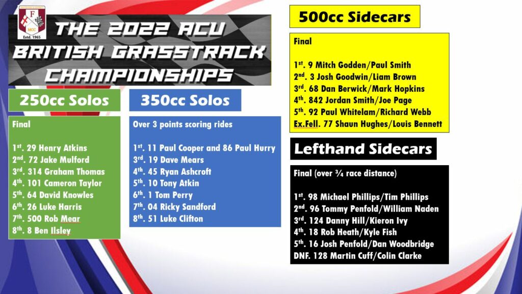 The Frittenden Motorcycle Club hosted the 2022 British Grasstrack Championships at their superb Frittenden Raceway venue.