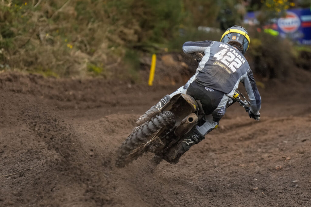 Heyman, who finished with his face caked in dirt, said: “I had nowhere to go in the first race start and went down. I was so far back but carried on until the end to get some points. In the second race I was I was sixth for ages but finished 13th after I crashed. My goggles were destroyed as there was so much mud. I went to pull a roll-off but it had been smashed off so I had to take my goggles off.”
