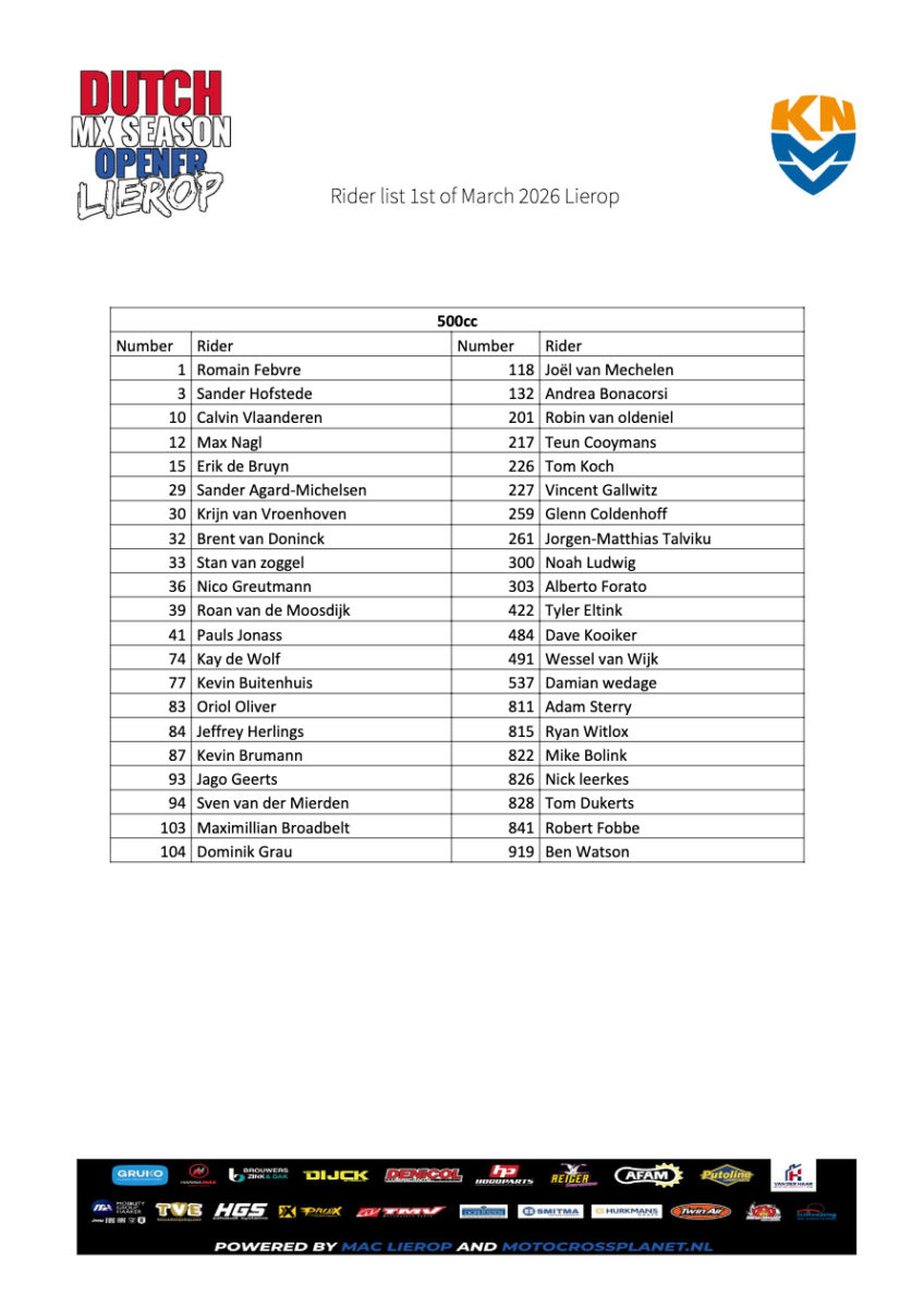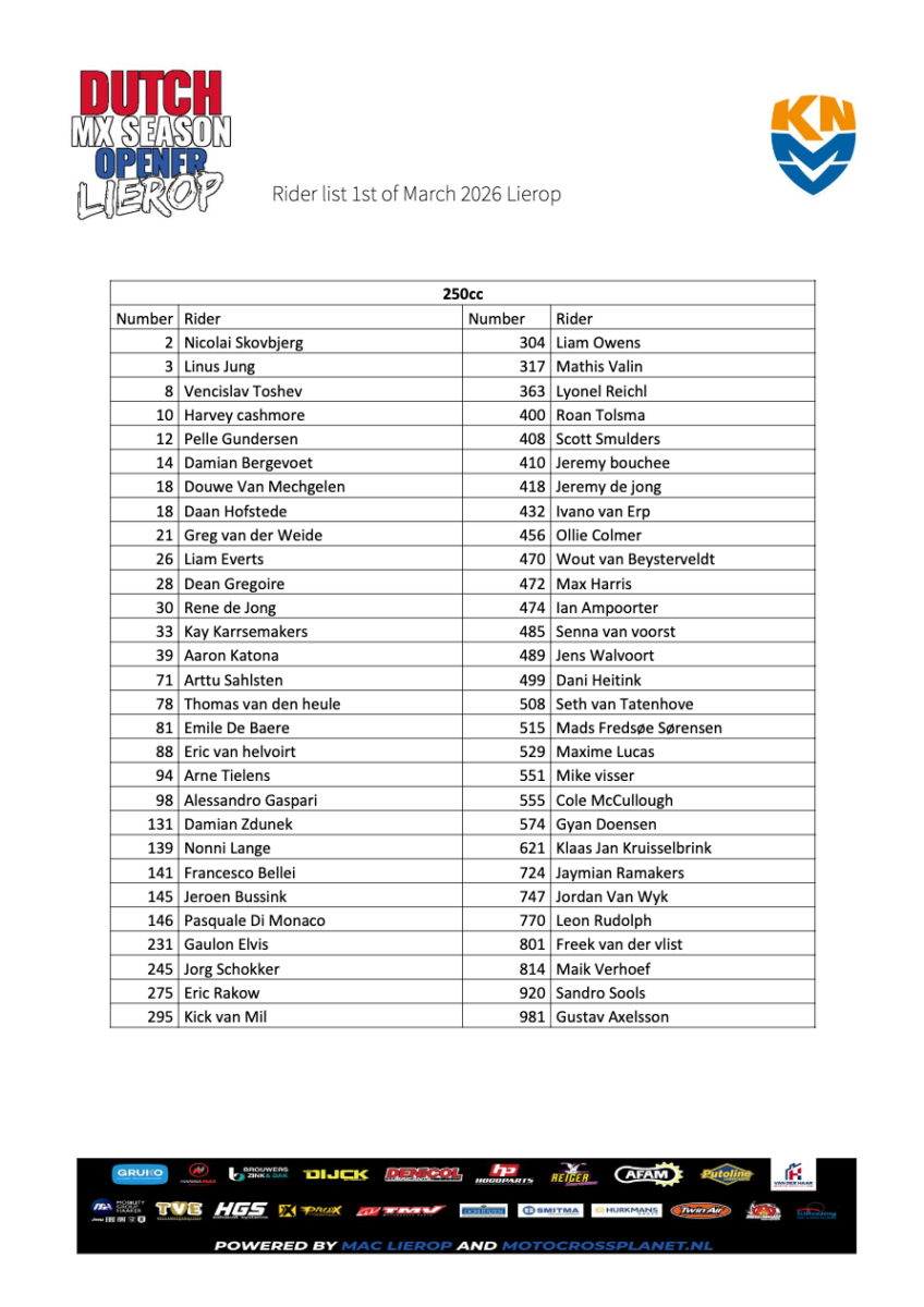 In the 250 class, British riders are Ollie Colmer, Max Harris, and Cole McCullough, with Gyan Doensen, other MXGB riders hoping to be in the mix against the likes of Liam Everts and Mathis Valin.