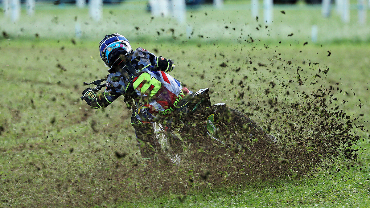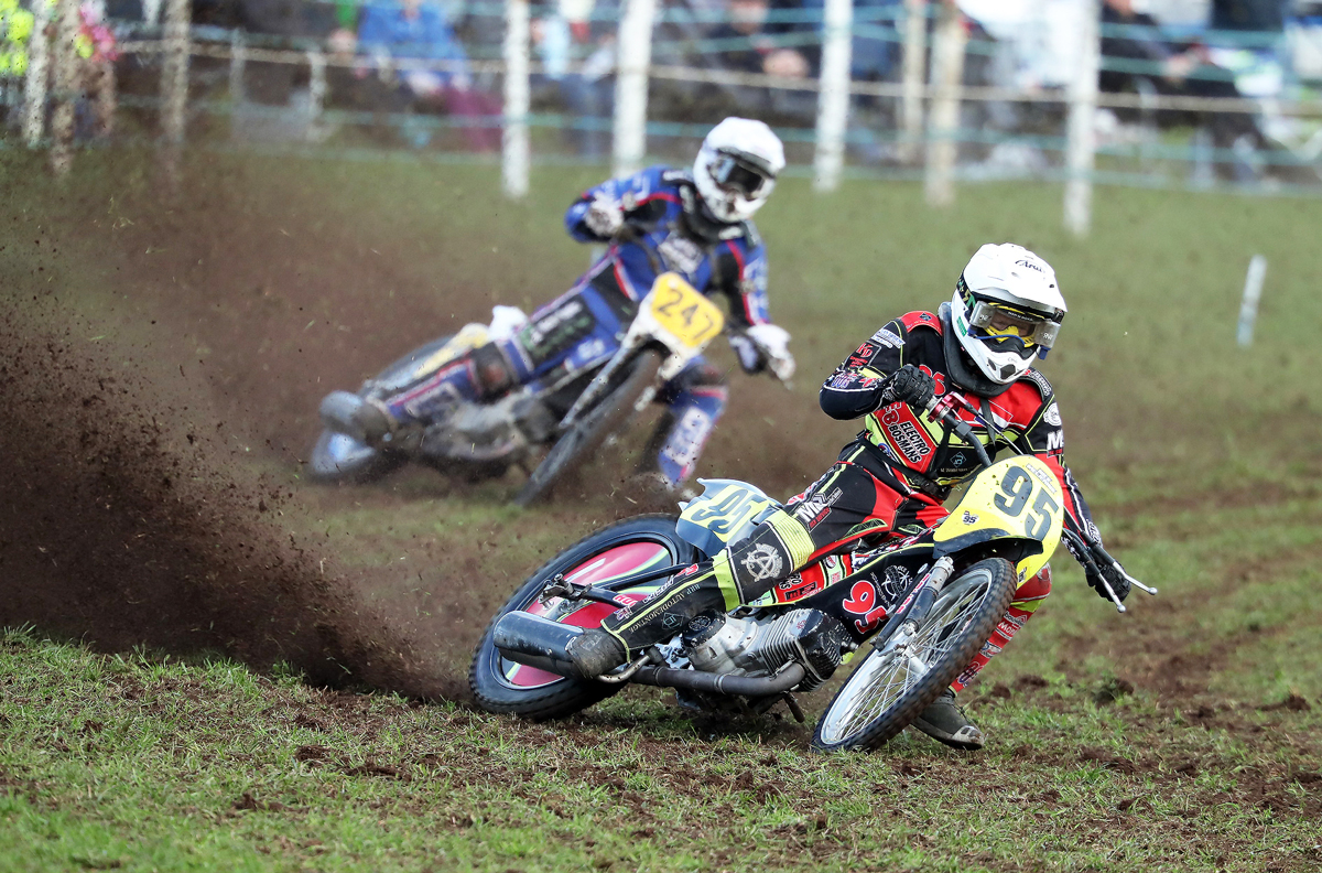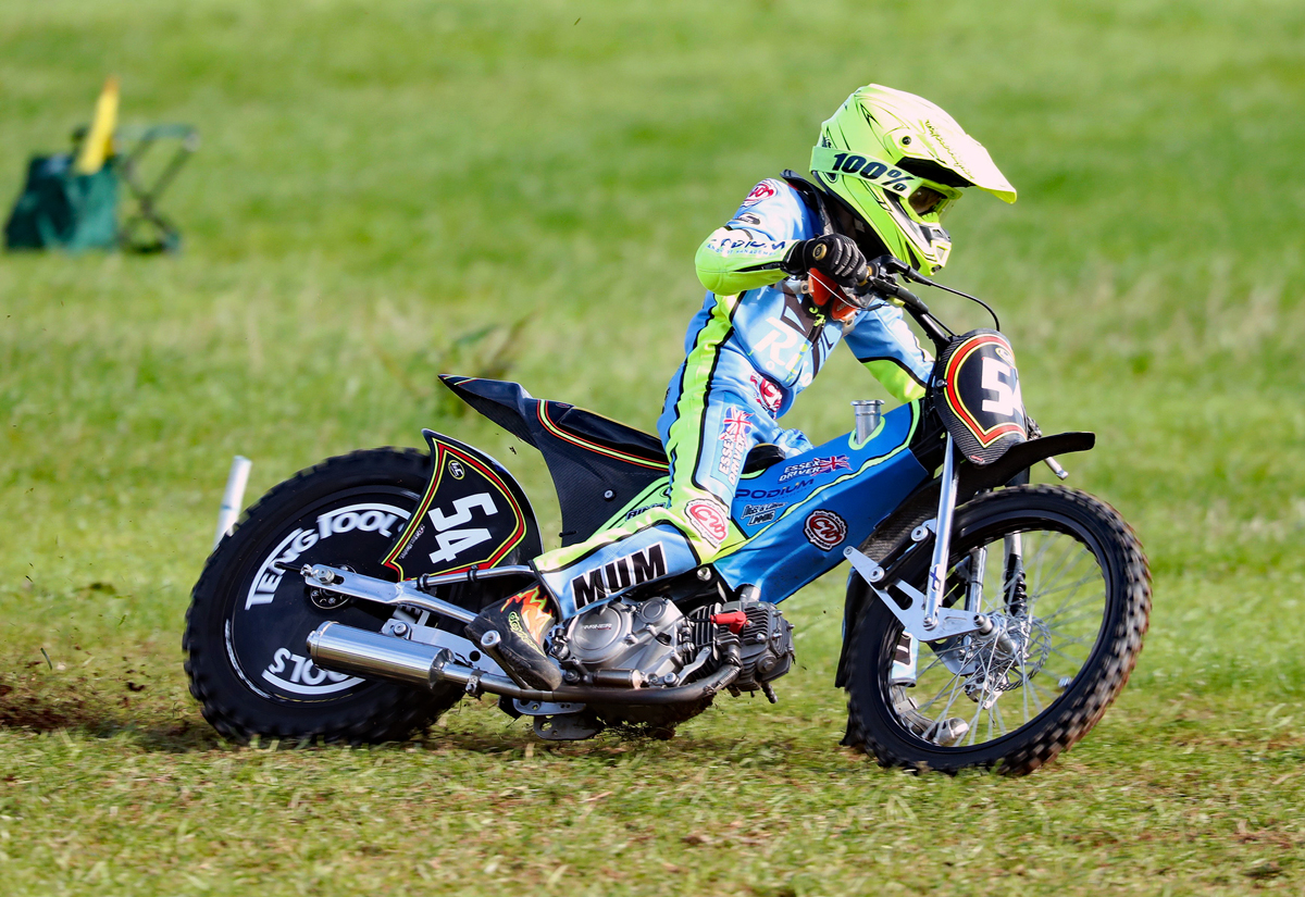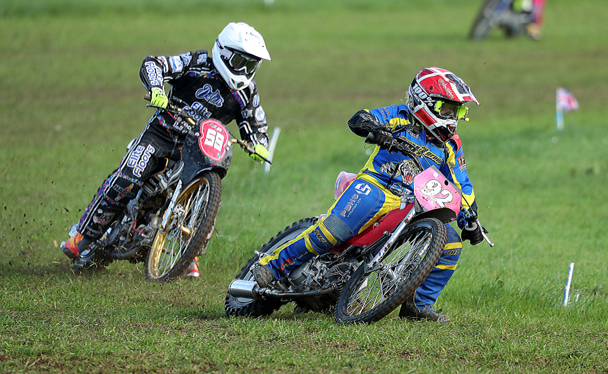 Surprisingly missing out on the Whoppa final, Ritchings, who has had a super season on the grass, crashed out in the semi-final on the pits turn. Indeed, that turn had proved troublesome for several other contenders with the soft, loamy surface cutting up, producing inside ruts and plenty of loose material. Also not quite making the big last race were the unlucky Charlie Wood and Jordan Derrick. Wood crashed in his third ride on the final turn, in the process injuring his shoulder. Bravely, though, he still competed in both his fourth heat and the semi whilst Derrick was left to rue the fall in his opening ride of the day, which meant that he missed out on final qualification by just a single point!
