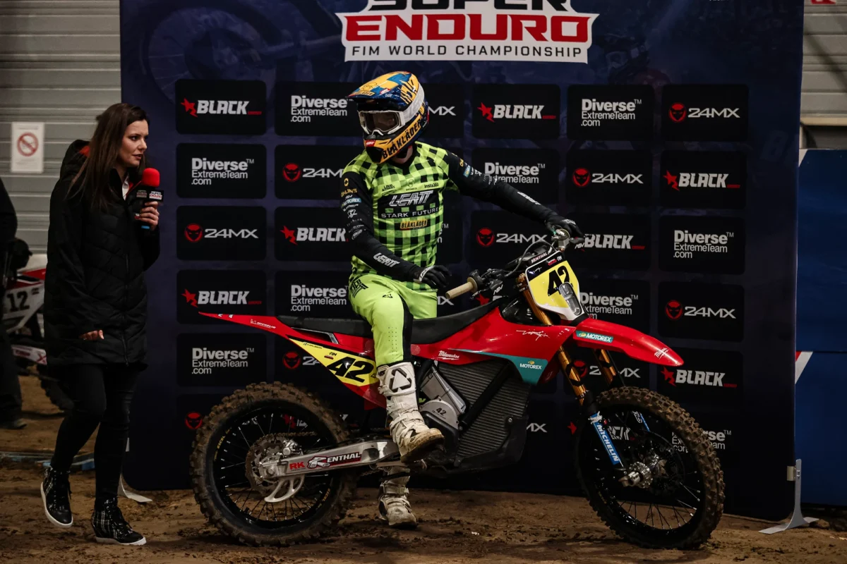 Living up to his expectations from Timed Practice, Stark Future’s Eddie Karlsson claimed the fastest time in SuperPole. As the final rider to start, the Swede was masterful on the technical course, clocking a time 0.396 seconds quicker than his rivals. The win not only marked a first SuperPole victory for Karlsson, but also a first for an electric bike. Behind him, the X-Grip Racing duo of Ashton and Mitch Brightmore were second and third, respectively. Stark Future’s Toby Martyn was fourth, with Red Bull KTM Factory Racing’s Manuel Lettenbichlerfifth. Fernandez 56’s Marc Fernandez and Triumph Factory Racing Enduro Team’s Jonny Walker completed the top seven.