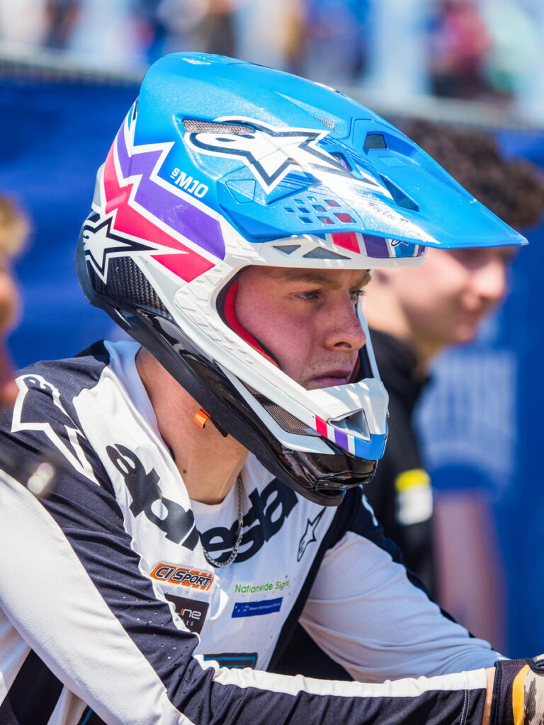 Racing in the Pro Fastest 40 class on Sunday, Joe Brookes made an incredible start, by setting the fastest lap time in the MX2 class by 1.5s on the rest of the field. Joe has been lacking some confidence in his rookie year in the Pro class, with it being a huge jump up from the youth class he graduated from in 2022, so this gave him some much needed confidence to attack the races.