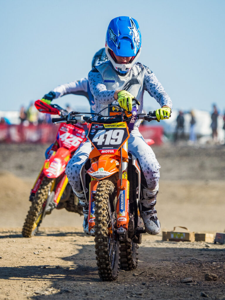 For Blake, this weekend like many others so far this year, was about building. In his rookie year on the Big Wheel 85, he is continuously adapting to the bigger bike, as well as racing faster riders. Qualifying 5th gave Blake a good gate pick for the races, however his starts on Saturday forced him to work hard, coming through the pack. In Moto 1 & 2, Blake found himself outside the top 20, fighting for position to claw back some points. He rode very well, passing a large amount of riders, and crossing the line in 8th and 7th in his respective Moto’s.
