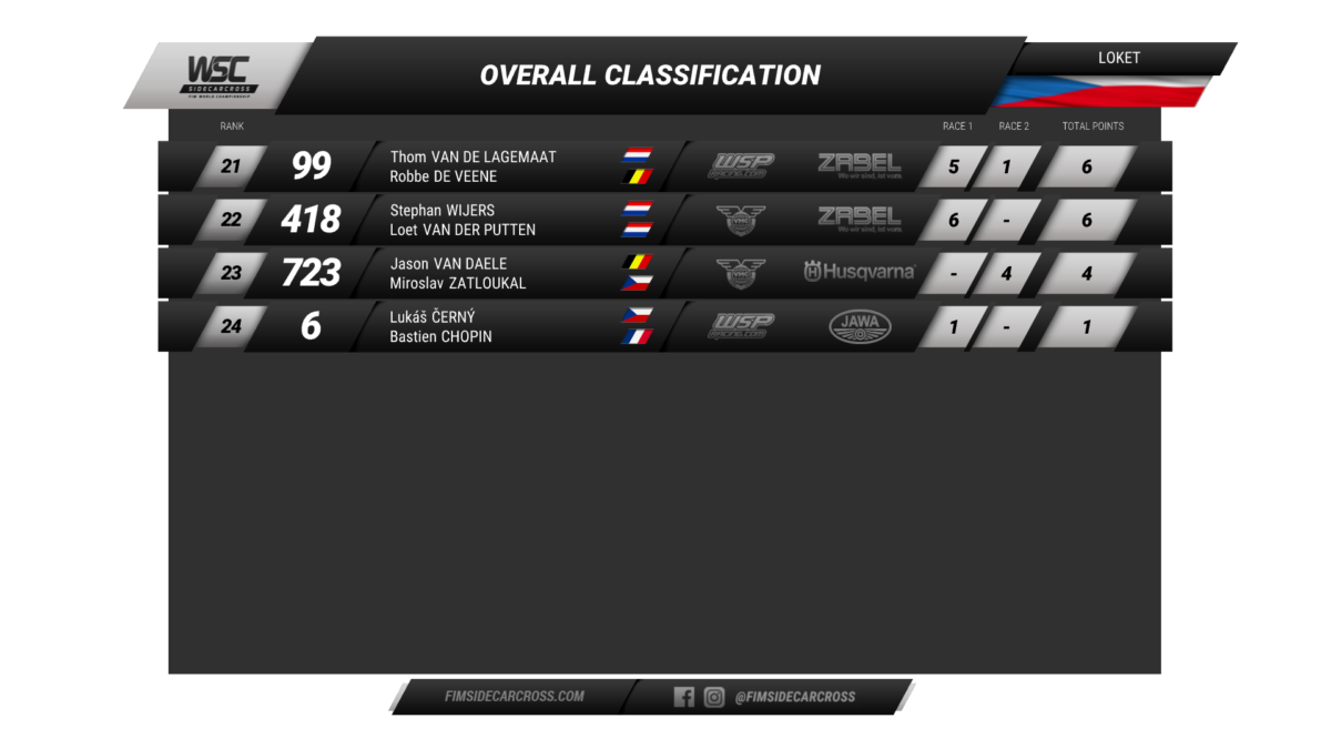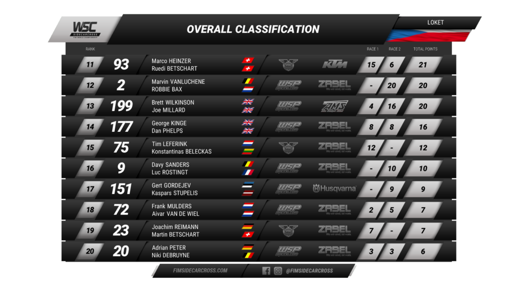 The spectacular Loket track, with its steep climbs and drops, its massive jumps and dauntingly tight hairpin turns was guaranteed to bring out the best from the teams on race-day. We had seen throughout qualifying what they were capable of, and the bar was raised even higher when points were at stake. One or two encountered problems, with Jake Brown/Paul Horton having a massive crash in timed practice resulting in a dislocated shoulder.