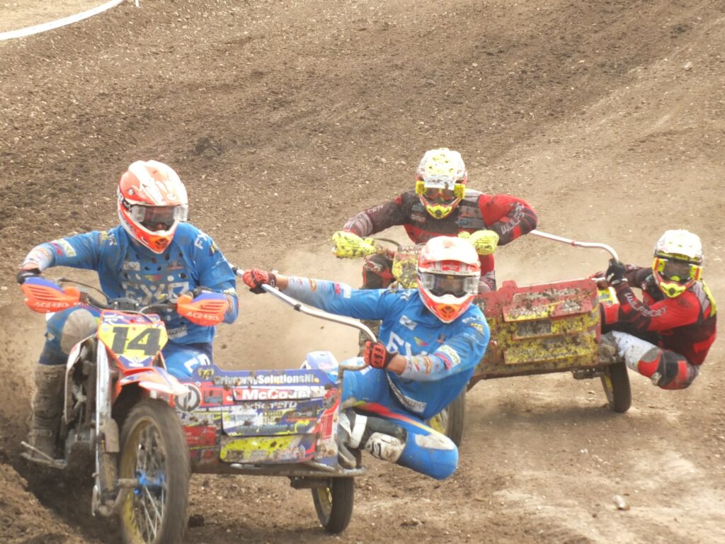 In the last championship race of the season Stuart Brown / Josh Chamberlain held a four-point championship advantage at the start of the race and were determined to keep it that way, but it was Brett Wilkinson / Joe Millard who took the hole shot from Gary Moulds / Lewis Gray with Dan Foden / Nathan Cooper third and Stuart Brown / Josh Chamberlain fourth. A big cheer went up from the Wilkinson Fans, and the Brown fans held their breath because they knew that if Brett Wilkinson / Joe Millard won this race Stuart Brown / Josh Chamberlain had to be second to retain the championship title. The battle was on. Brett Wilkinson / Joe Millard held the lead throughout doing everything they could to gain maximum points, the rest was outside their control. Behind Stuart Brown / Josh Chamberlain gradually moved forward, steady and leaving nothing to chance, they slotted into second place, and that was enough to take the championship win by just one point. What fantastic racing from both teams, in every race all season, nothing less than a third place in any race from either team. The large crowd appreciate that and gave both teams massive cheers as they crossed the line, as they did for Gary Moulds / Lewis Gray who took third in the championship. Dan Foden/ Nathan Cooper held fourth. A brilliant race behind for fifth place with Neil Campbell/ Ross Graham moving ahead of Michael Hodges/ Jack Wilkinson.