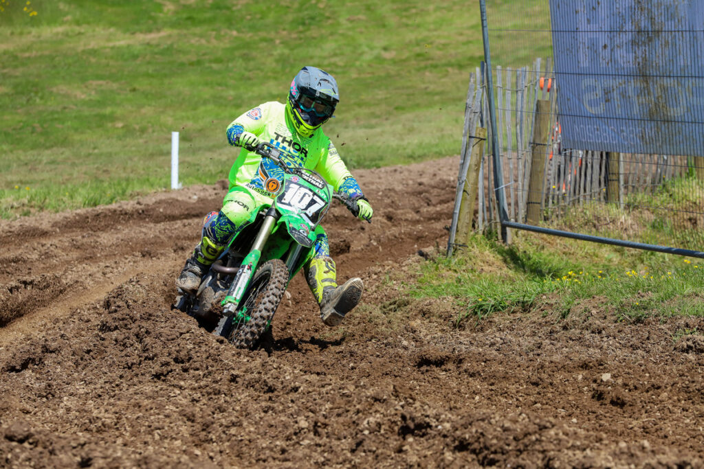 Manners suffered a rear puncture within minutes of the start of the final moto and despite starting in front had no chance of staying in front of Cole. O’gorman had gated but it just wasn’t his day as he dropped back quickly behind Max Corke and Cole. Kuehn fell after being in the hunt. Smith moved past the other Corke and fast gating Beaumont before losing out the the slower starting Ridgway and Thorpe on the 125’s.