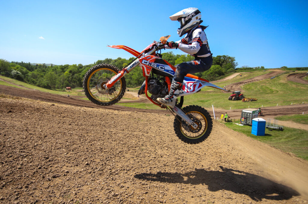 The Auto class was a little low on numbers but the speed and style of the front runners was amazing. It was going to be an uphill struggle just to get round this challenging circuit for most of them as even by the first moto there were already wheel deep ruts for these little bikes! Mason Foreman was undoubtedly the one to beat after setting a qualifying time not far off 5 seconds quicker than the next best! Indeed he went on to take an undefeated weekend without putting a foot wrong. Blake Bracey was his closest rival but come the checkered flag he was almost a minute down! Bracey in turn had a good gap to play with as things started to tighten up after with Huey Sansom taking a solid 3rd and Jasper Morgan and Sam McEvoy crossing the line with only a second separating them. Roy Townley wasn’t far off the back of those then a bit of a gap back to Louie Jarrett and Hugo Jackson both battling hard for 7th. Freddie Dennis held on for 9th ahead of a race long dice between James Dugmore and Oscar Morris.
