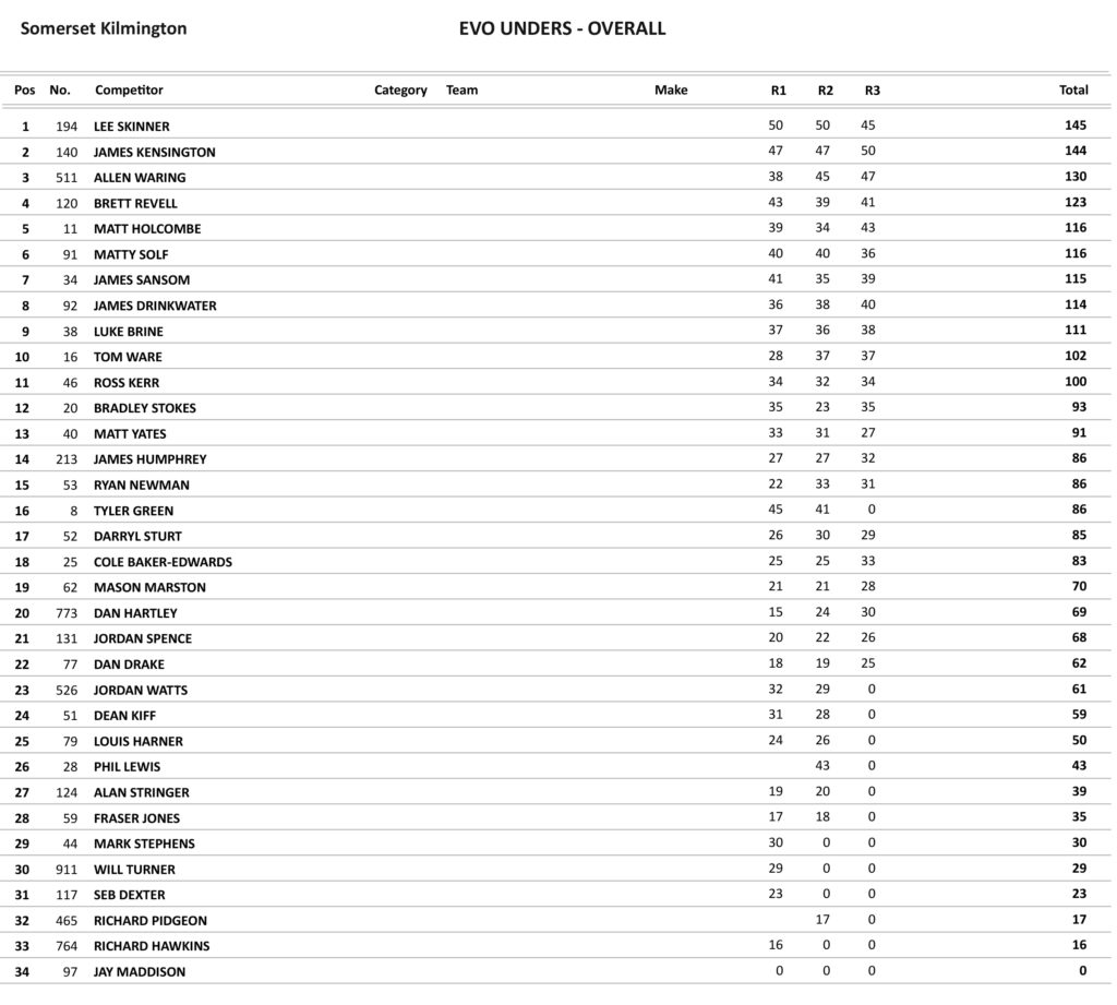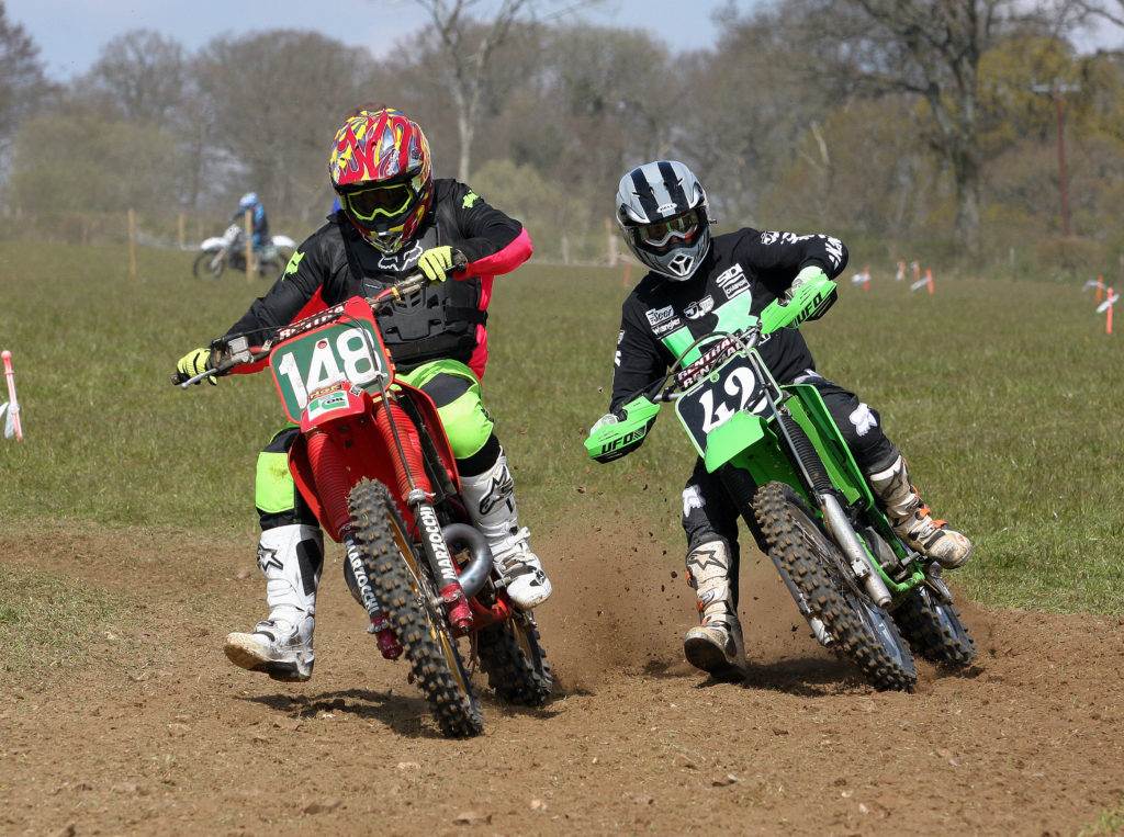 The Under 40’s Evo opening race saw the CR 250 of Lee Skinner with a flyer out of the gate who was soon to set off and giving chase after moving up from 4th was James Kensington on the YZ 250, but Skinner held a 2 second lead to take the win from Kensington with Tyler Green taking third. The second race was probably the best race of the day with Skinner again leading this time from Kensington with Kensington all over him on lap 2 and was to force his way to the front, but Skinner who had a gearbox problem kept with Kensington and was all over him as they went into the last lap with both riders banging bars at times and it was Skinner who took the win literally by a whisker at the line with Allen Waring taking third. In the last race Skinner was out on his spare bike and did not get the best start in this one and it was Kensington who was soon to hit the front on the opening lap passing Waring, but Waring was not to let Kensington get away and stuck with him to the line with Kensington holding him off to win by just half a second with Skinner coming home in third to take the overall by just one point.
