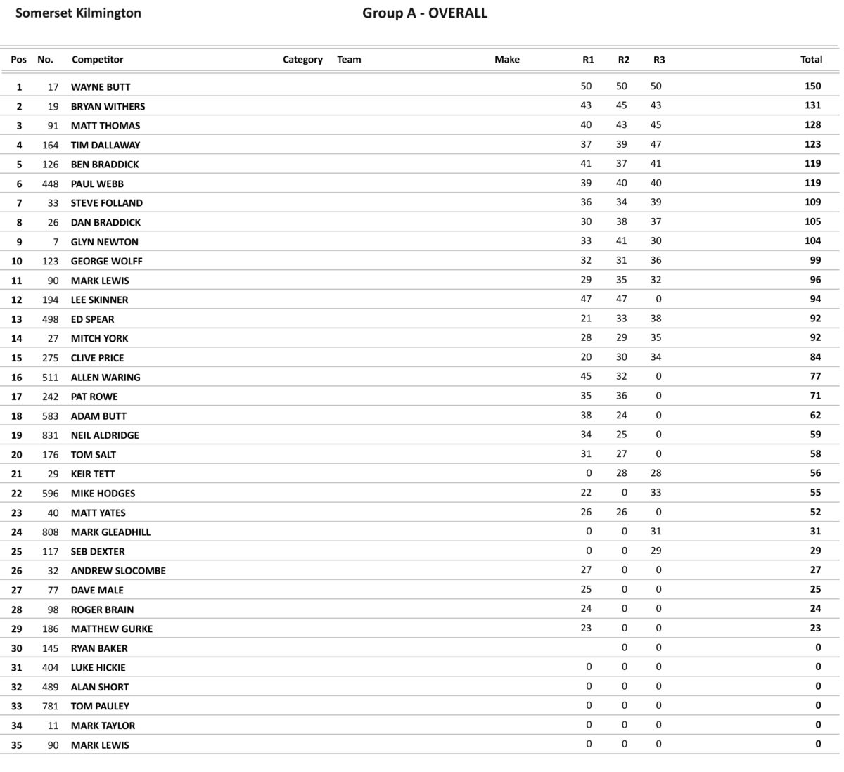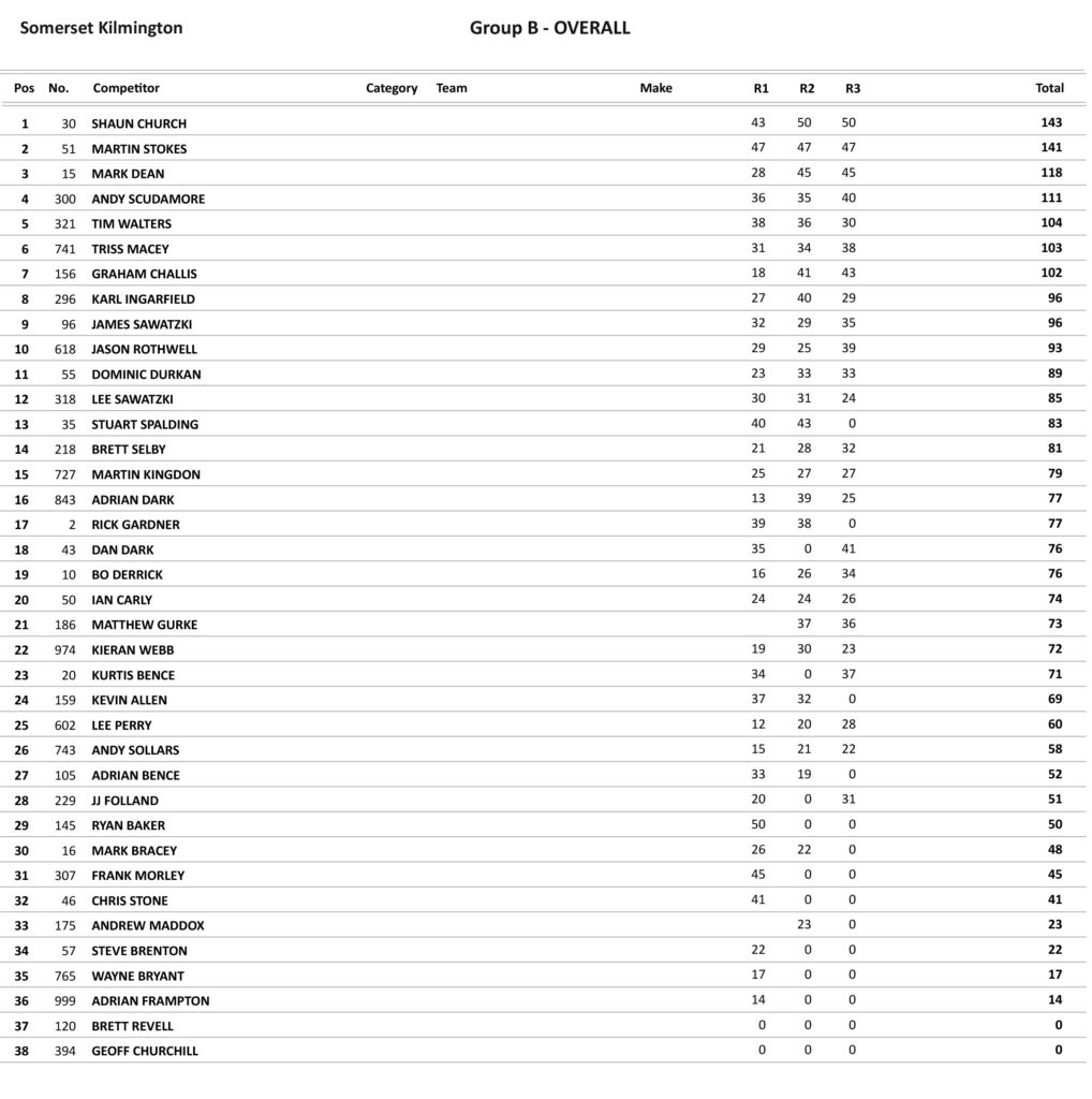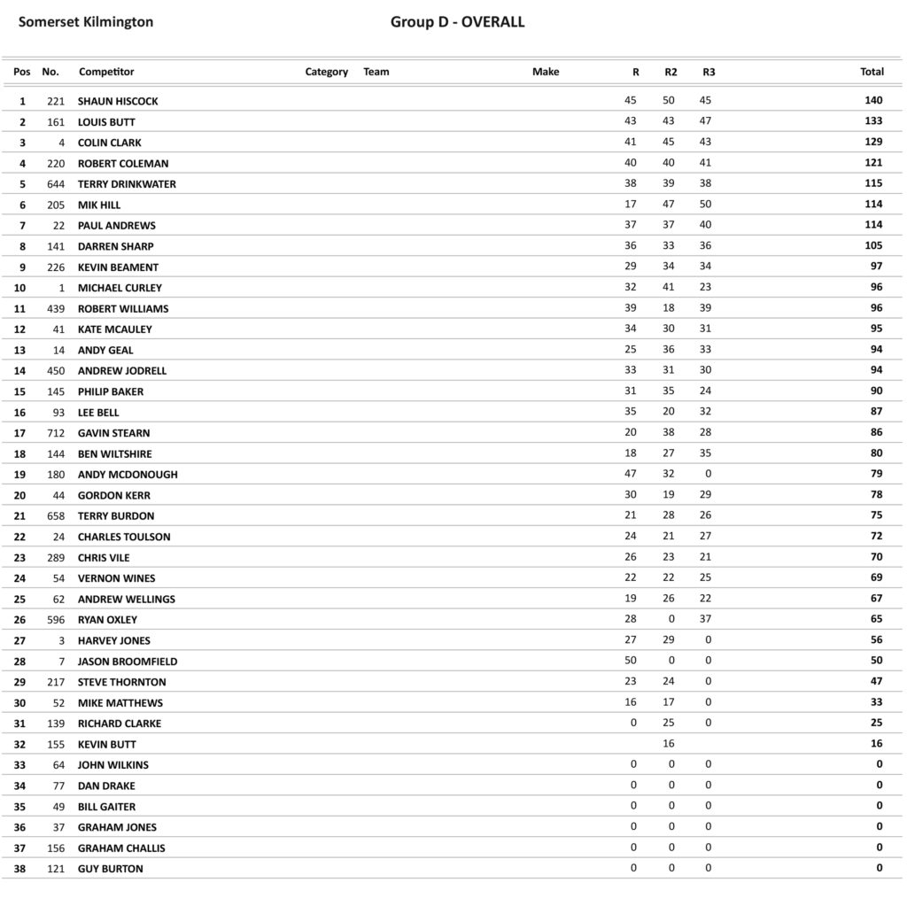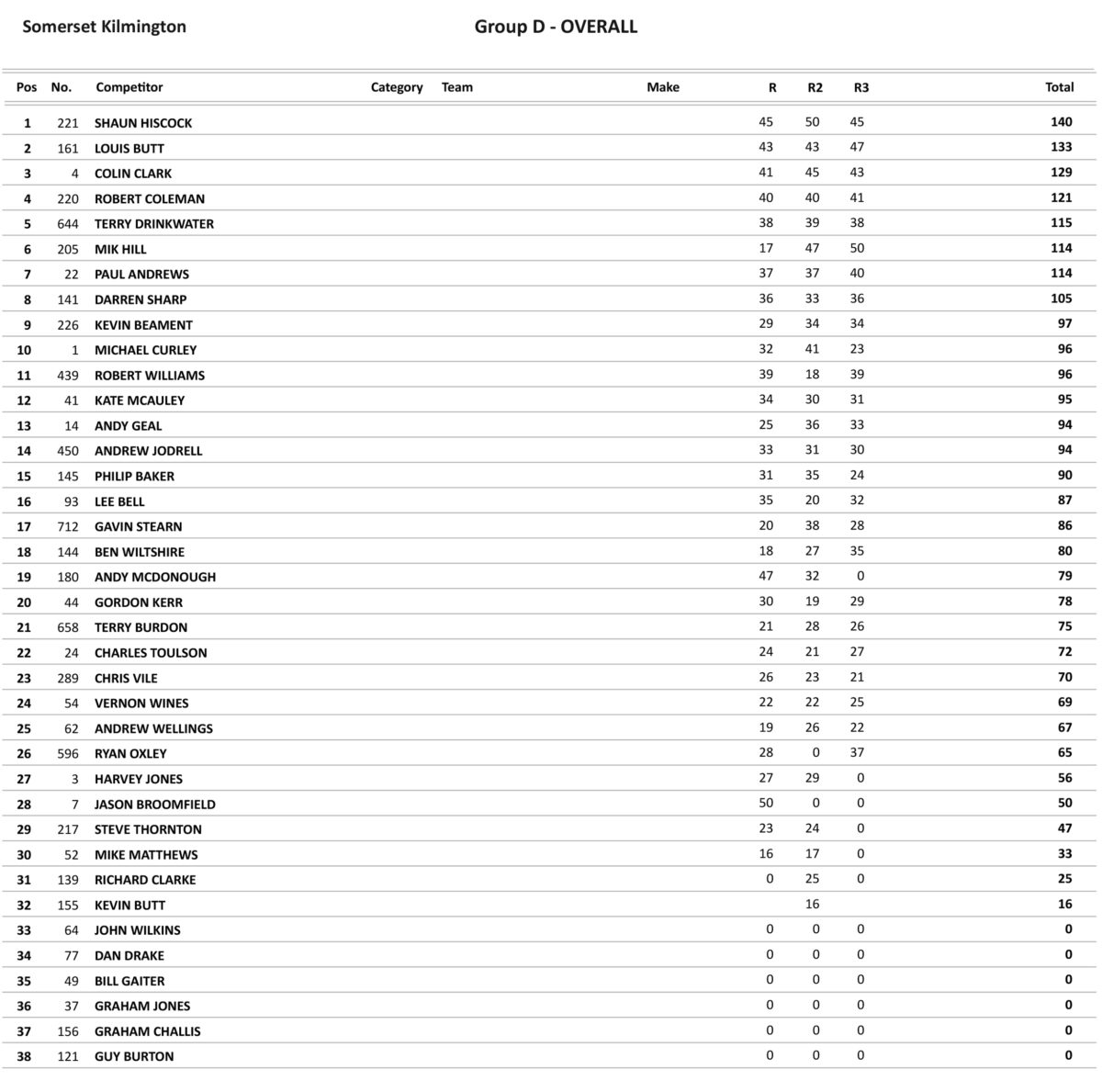 In the Twinshock D class, there was no one dominating as it produced three different winners in the shape of Jason Broomfield, Shaun Hiscock, and Michael Hill but it was Hiscock who with two thirds to add to his win who took the overall.