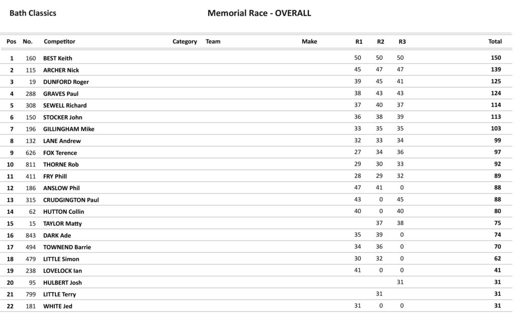 In the Taylor / French Memorial class, it was a clean sweep of wins for Keith Best with Nick Archer on the 475 BSA taking second overall with three good results ahead of Roger Dunford who also had three good rides to take third overall.