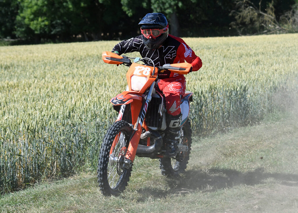 With thanks to Warren Scott for our new venue in the beautiful rolling Buntingford countryside. The course offered 3 miles of fast open farmland with connecting ditches and twisty woodland offering some shade in the scorching 28 degrees sunshine. The 112 entries in 56 teams who represented over 20 clubs in the 4 hour event tested everyone in the heat and riders had a slight respite after doing ½ hour stint before passing their time card to their riding partner for their ½ hour each session with 2 hours riding morning and afternoon. A well-earned break for lunch, while the course was reversed for the afternoon session, saw just 6 teams fail to finish in the extreme conditions.