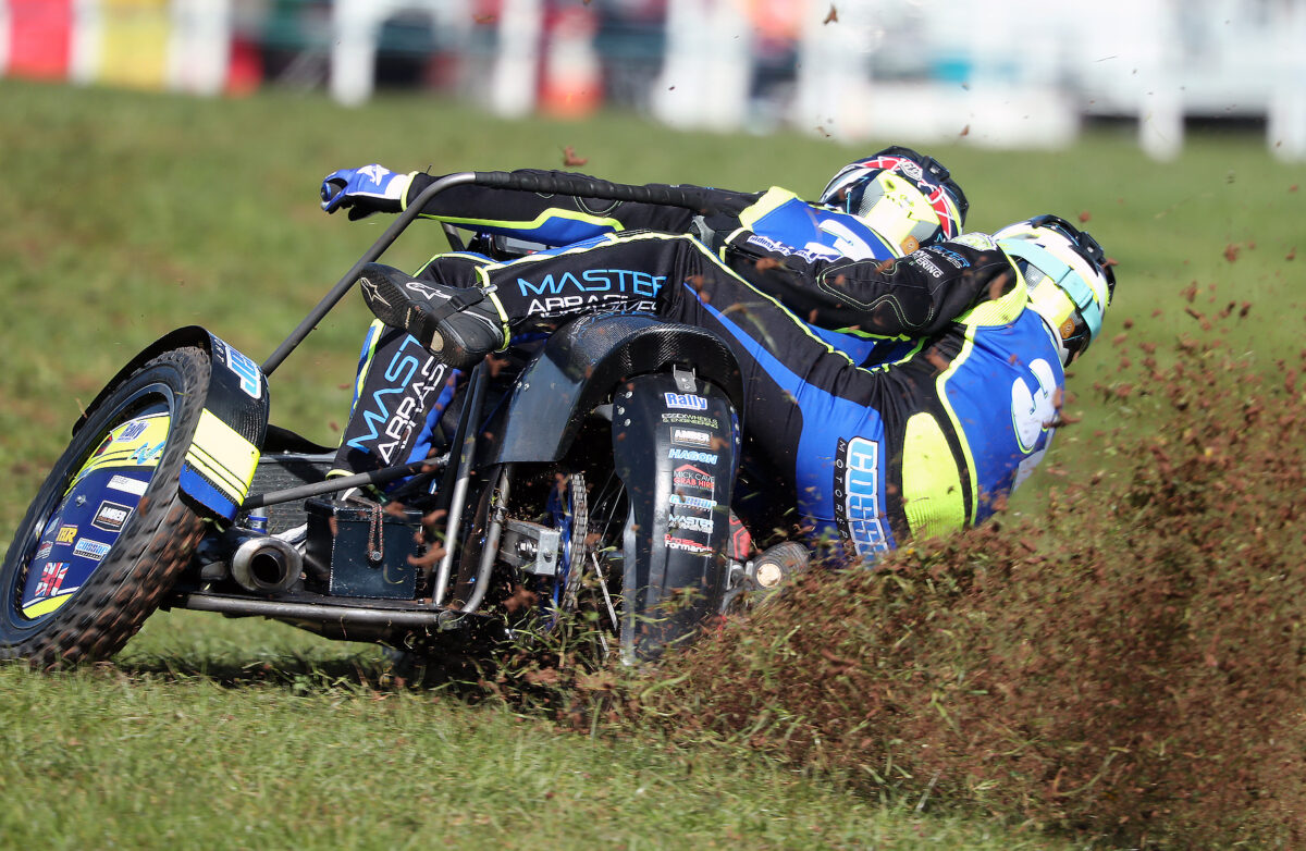 Paul Whitelam/Richard Webb, like Saunters, was also to go through the heats unbeaten with the exciting pairing of British Masters Champion Gareth Winterburn, who had Frankie Courtney in the chair, also scoring a couple of wins. Other highlights in the heats were Stefan Blyth/Morgan Blyth having a great tussle with Tom Marvell/Stephen Russell in race 26, and Will Penfold/Ricky Pay passing Peter Lloyd/Andi Wilson to take 2nd on the final lap of race 50 in leg four. So, after those earlier epic Saunters v Cossar battles and Whitelam being unbeaten, who would take the all-important final glory? Well, with a superb start and textbook ride, it was the immaculate Cossar all the way from Saunters who could never quite get close enough to challenge and make a move. In that final, Whitelam got home in 3rd from the very consistent John Hand/Adrian North. For Winterburn, the final was over on turn one as he spun to a halt!