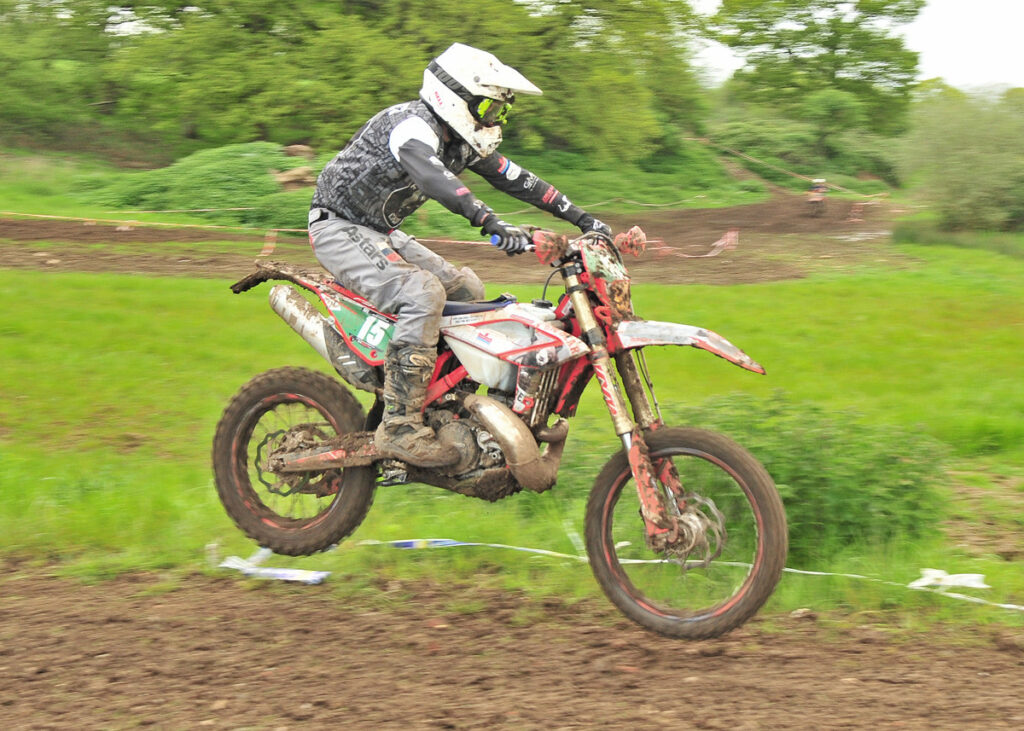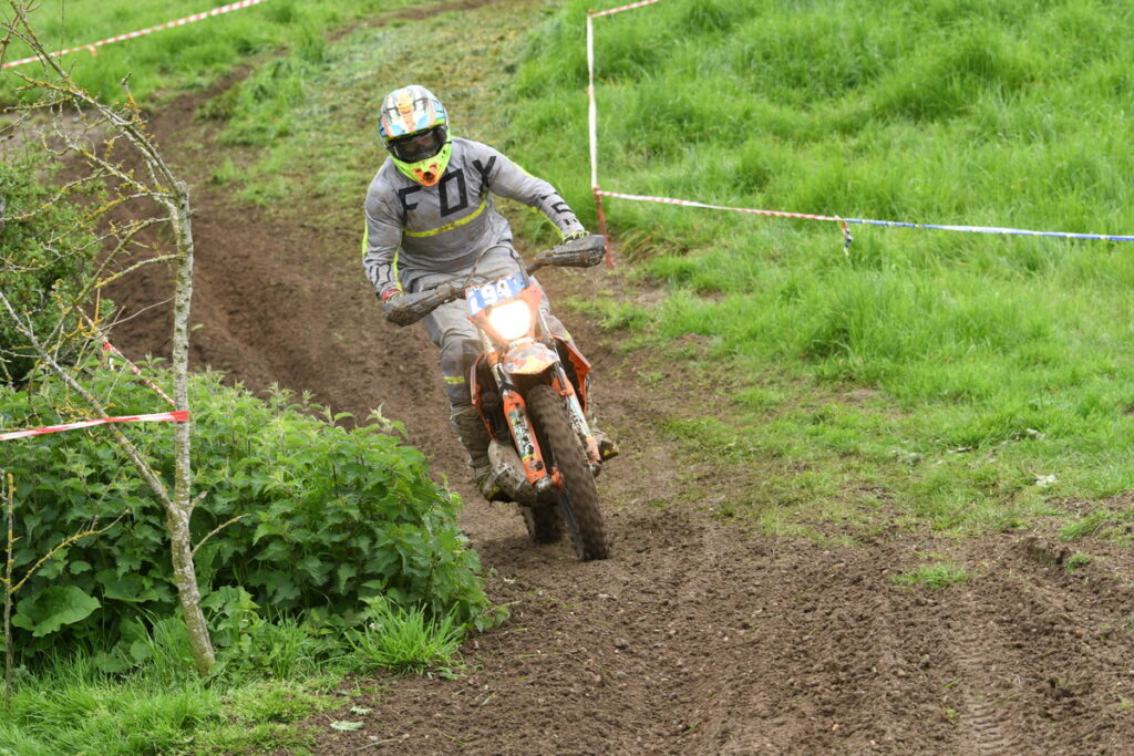 The soft ground over grass gave a varied and interesting course over farmland and through several wooded sections with an optional bog which many choose to avoid. To make the event more challenging: ever decreasing allotted times were given to the 4,5 or 6 sessions the six different classes rode with little time for rest or refuelling for any riders not pushing for the fastest time every lap out on the course. This multi lap timecard event tested the maths skills of even the most experienced competitors as fractions of a lap were given in penalties for coming in late. Competitors admitted how tight the timing proved to be and looked visibly spent as they entered the pits for the final time following the chequered flag.
